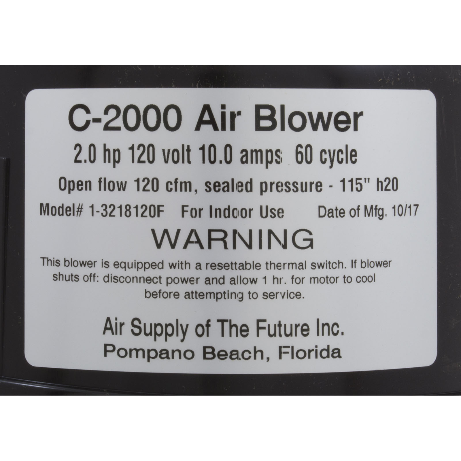 3220131 Blower Air Supply Comet 2000 2.0hp 115v 10A 4ft AMP
