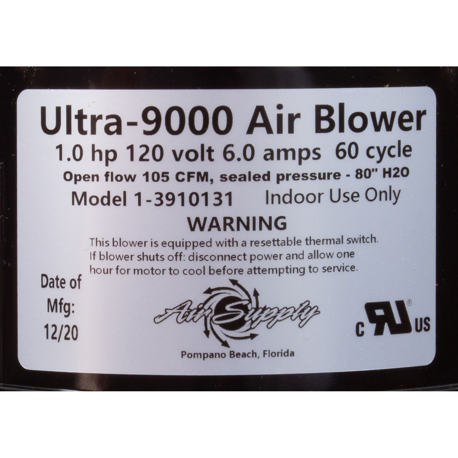 3910131 Blower Air Supply Ultra 9000 1.0hp 115v6.0A 4ft AMP
