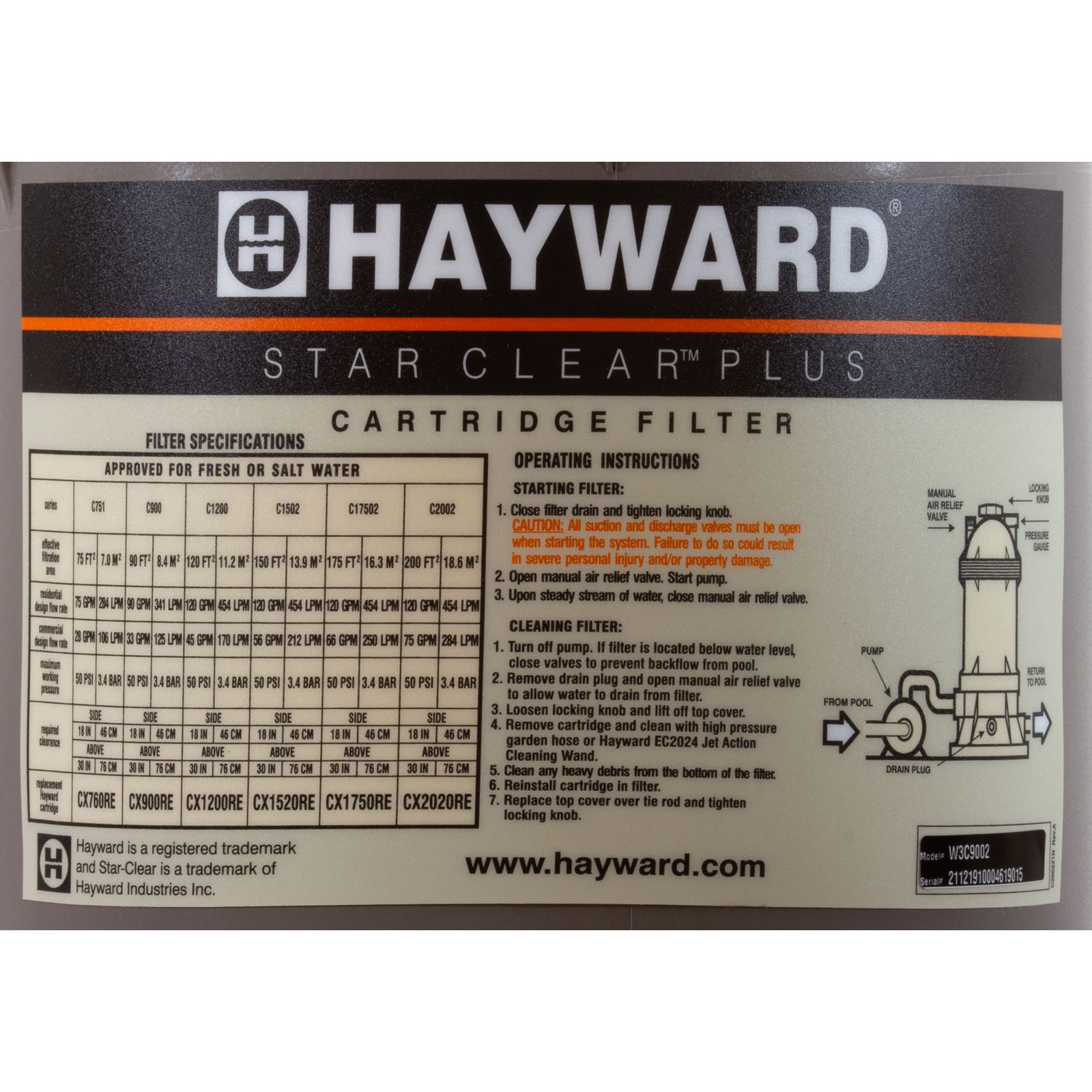 Cartridge Filter, Hayward StarClear Plus C9002,Inline,2"fpt