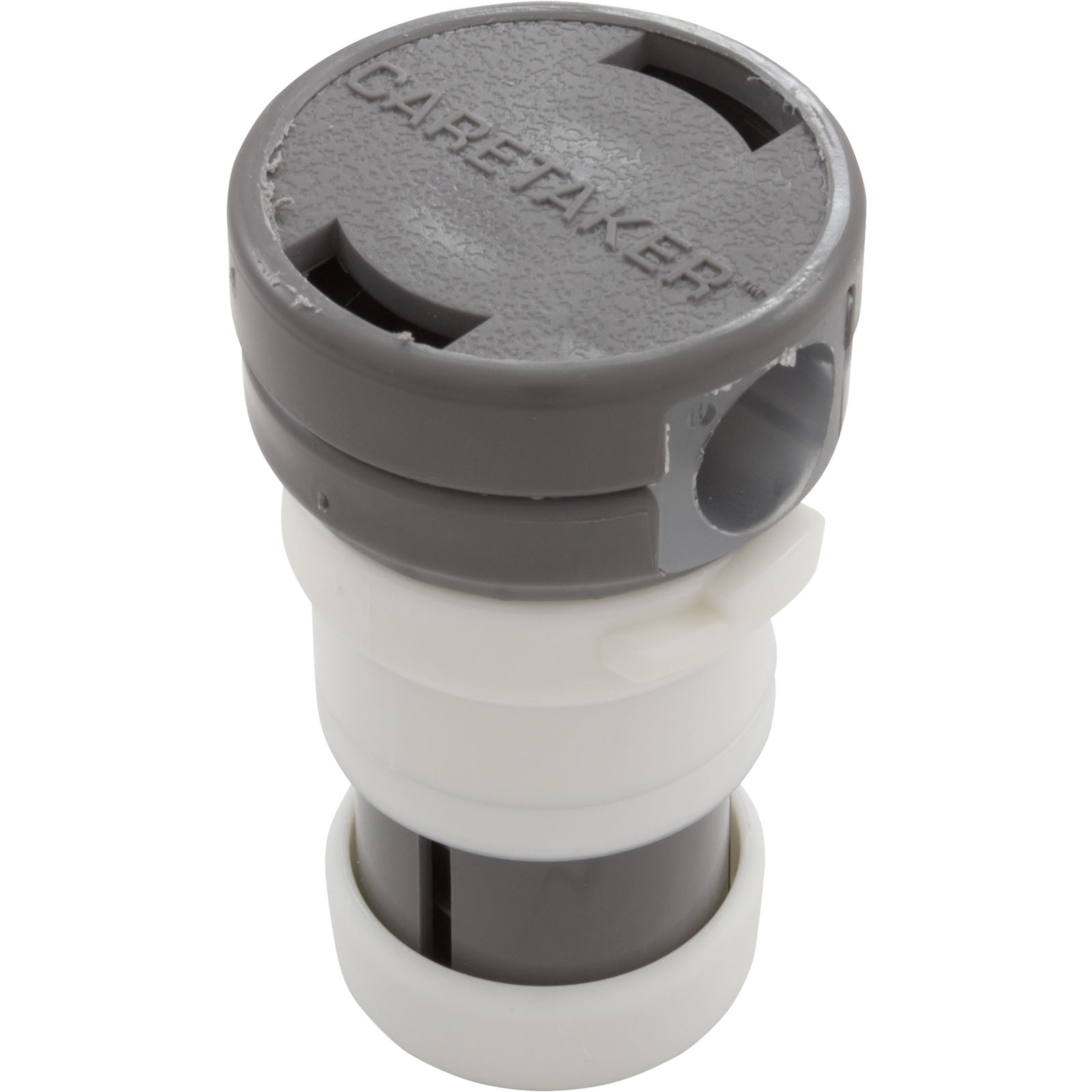 The Caretaker Pop Up, High Flow Threaded Cleaning Head is a replacement part designed for the Caretaker In-Floor Cleaning System and works by aggressively propelling strands of water across pool surfaces, guiding and removing debris and leaves from your pool for high-powered performance. Available in Light Gray, it threads securely into an available collar fitting with a quick quarter turn and has 3.5" x 2" dimensions.