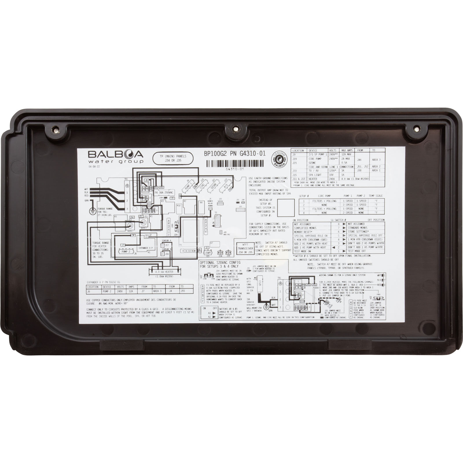 Balboa BP100 Control System with 4.0kW Heater and TP200T Panel