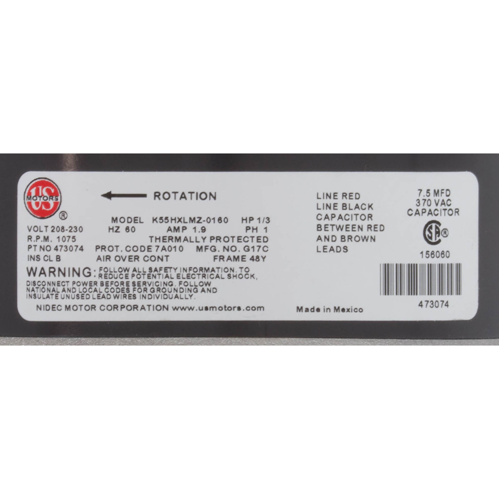 Fan Motor, Pentair ThermalFlo Heap Pump, w/ Acorn Nut