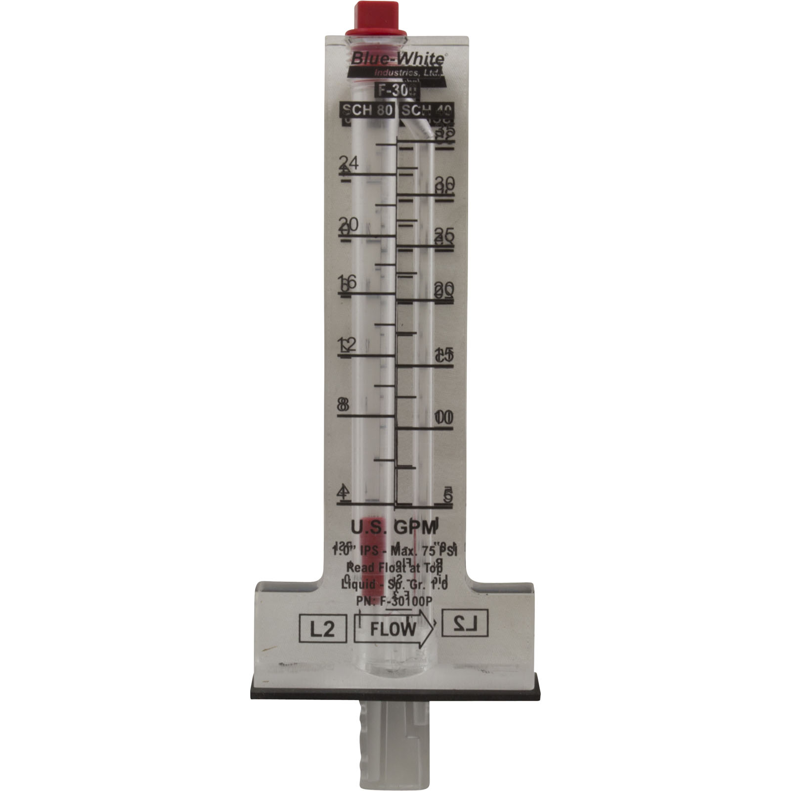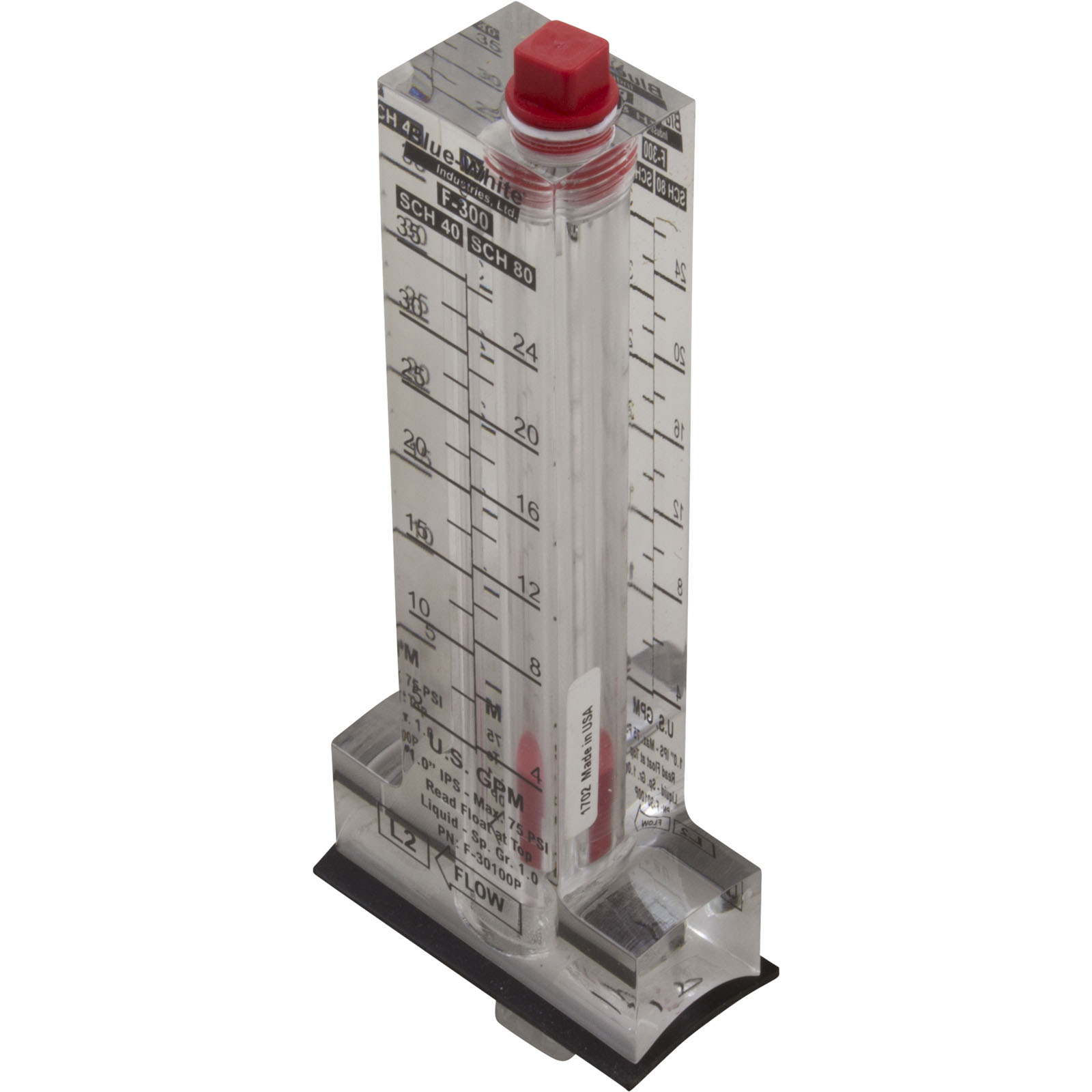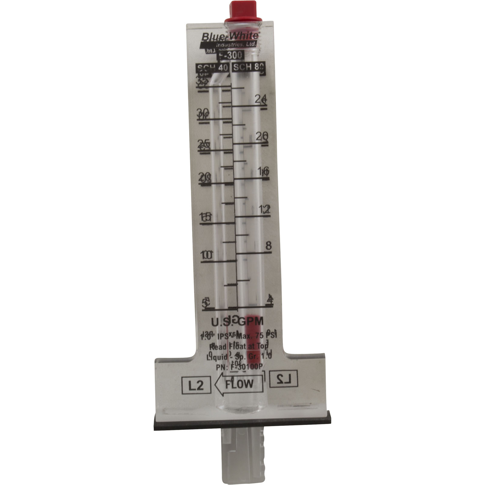 F-30100P Flow Meter Blue-White F-300 for 1" PVC 5-35 gpm