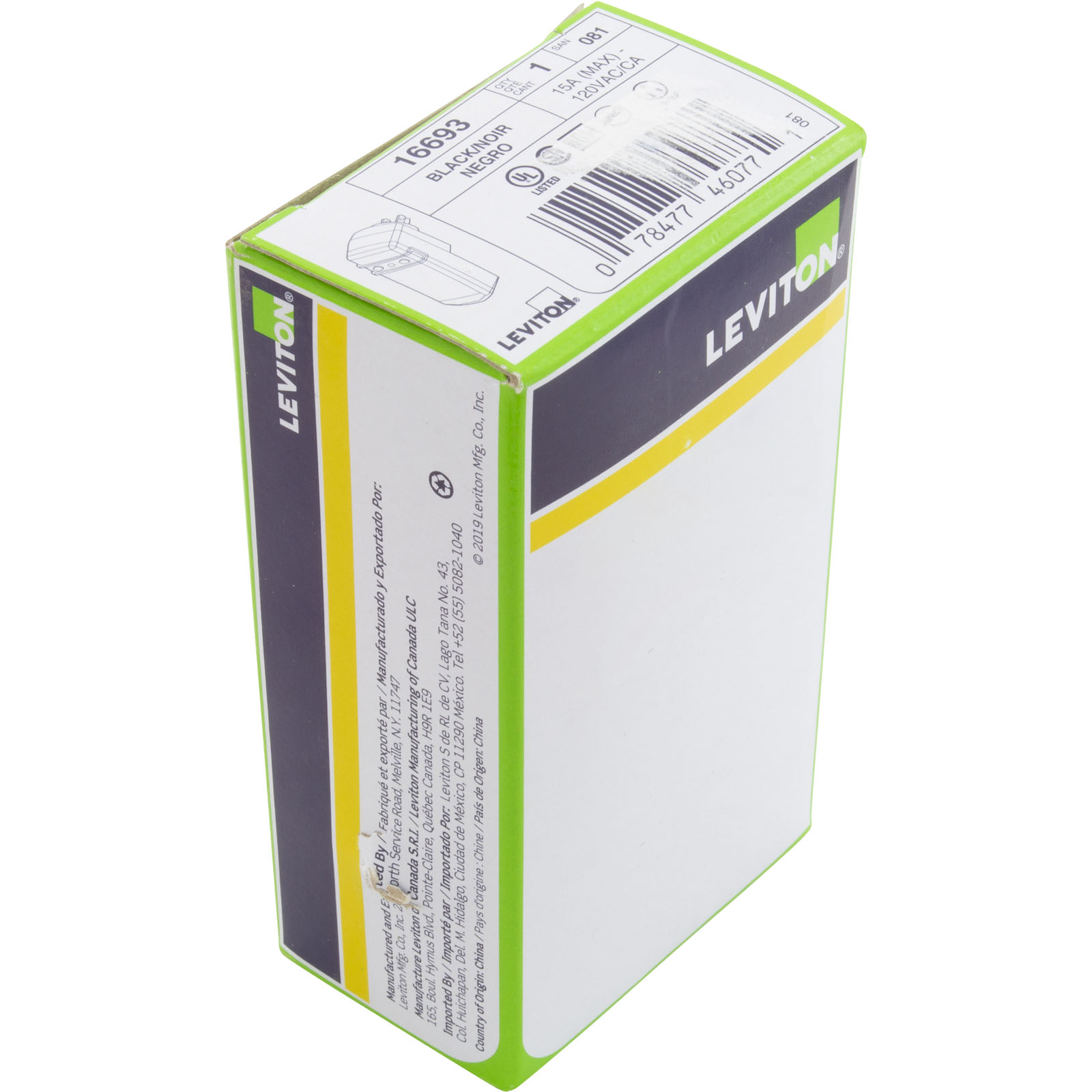 GFCI, Leviton, 15A, 115v, Self-Test, Auto Reset, Right Angle