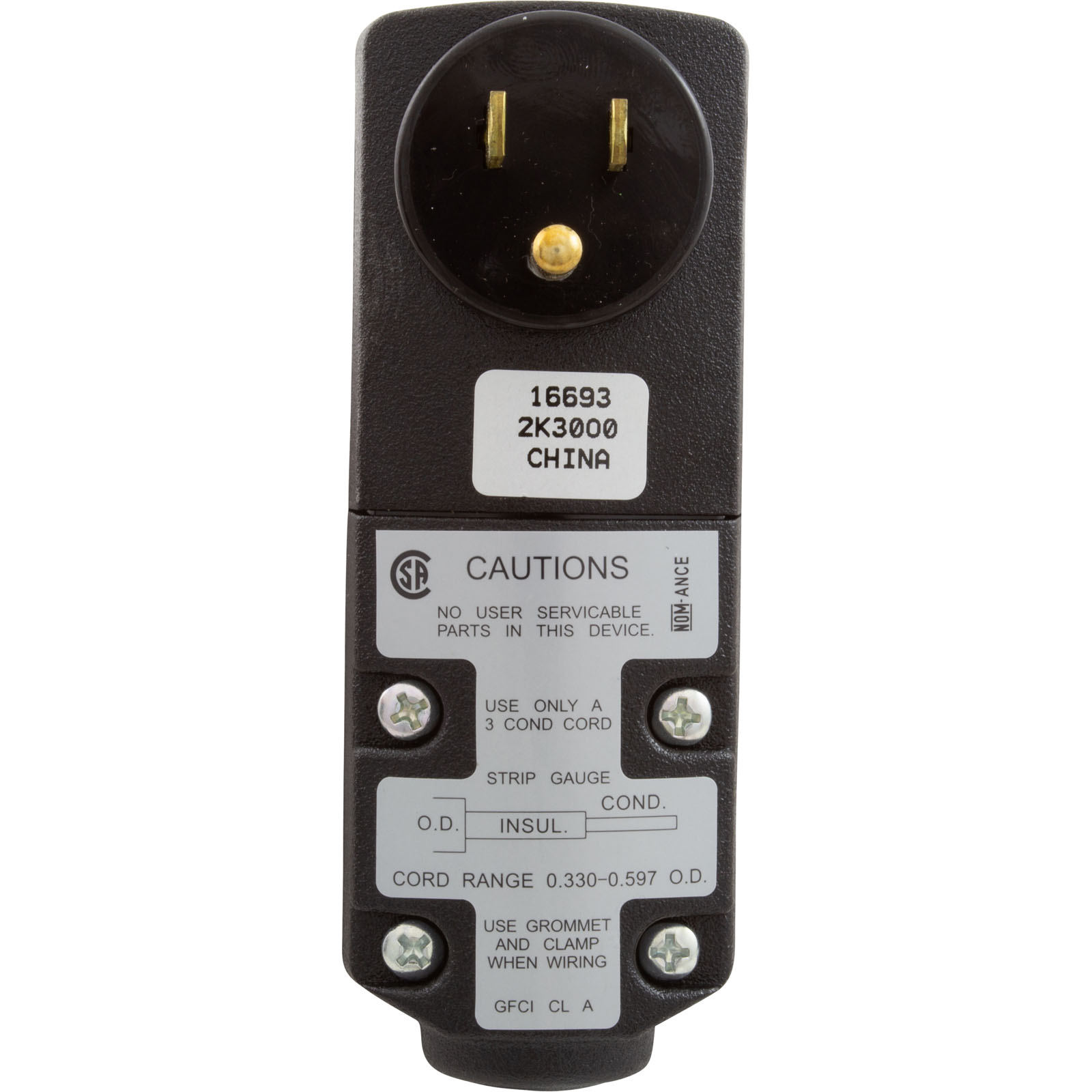 15 Amp, 115 VAC, Self-Test Automatic Reset Right Angle GFCI Plug (5-15P), Rainproof Design, Black
