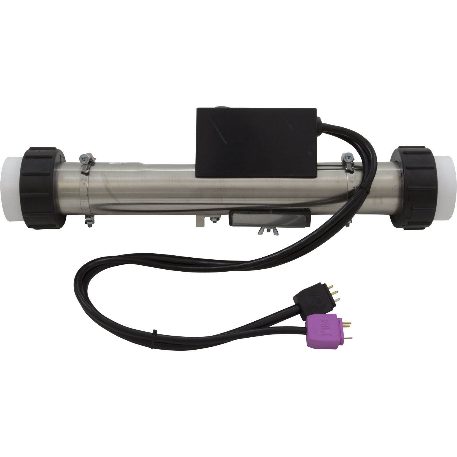 HydroQuip Platinum Series, 4.0kw 115v/230v flo-thru heater. The tube measures 15" x 2" and comes complete with a 24" cord and pressure switch. For use exclusively with the HydroQuip Platinum series electronically switched control systems featuring slide heater technology.