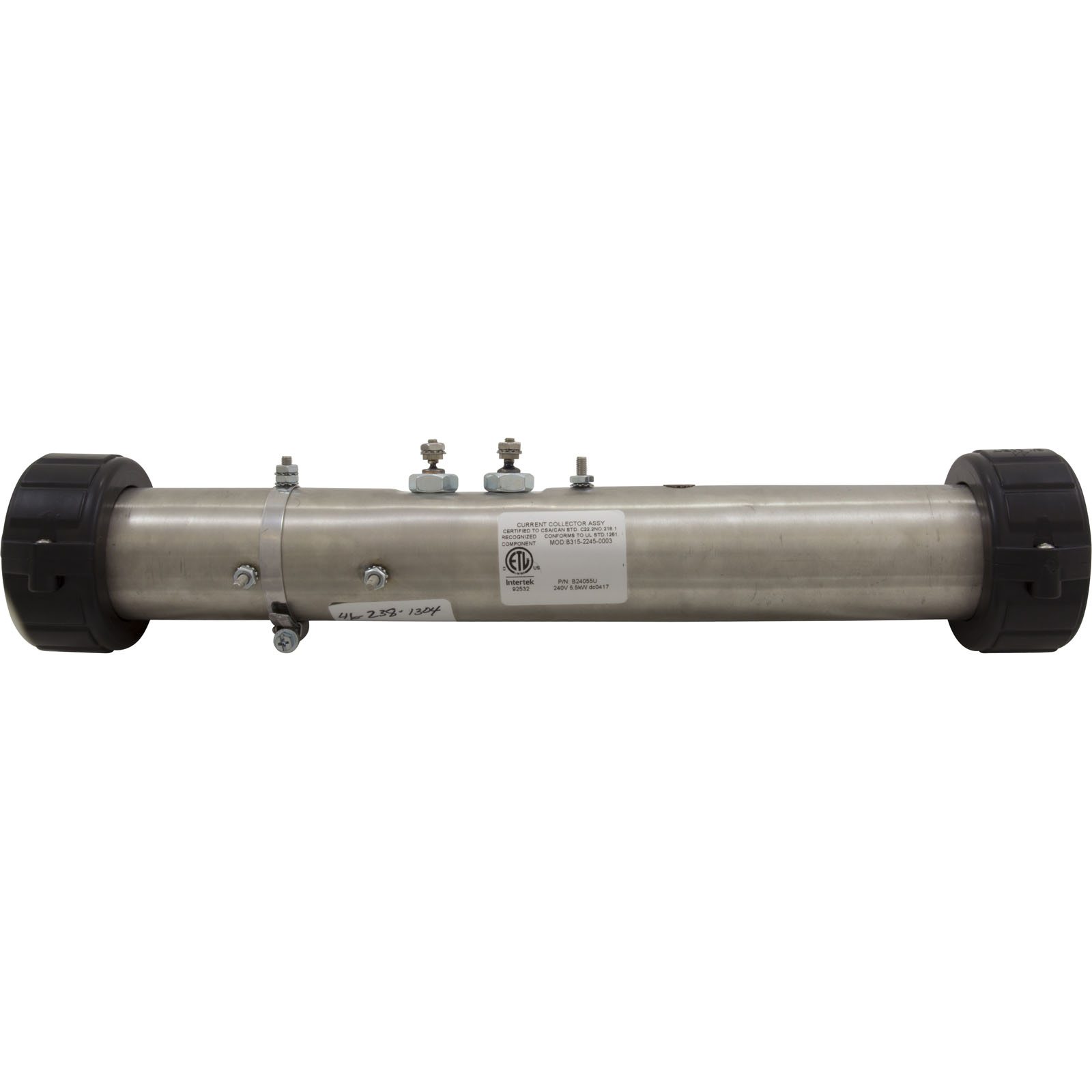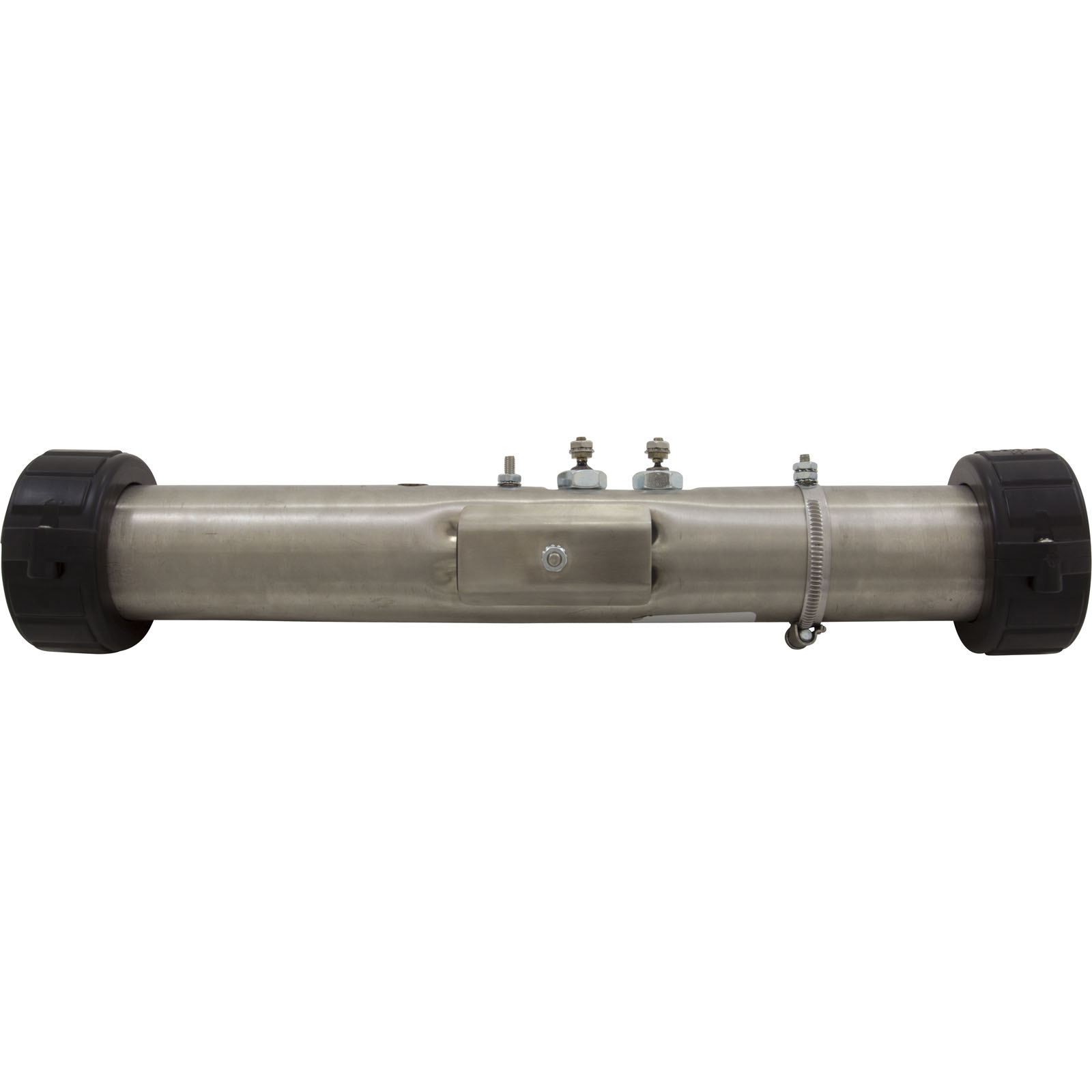Therm Products C2550-0802ET replacement 5.5kW/230v flow thru heater assembly made for use on Morgan Spas. 2" x 15" stainless steel flo-thru heater assembly with mounting studs, hi-limit mounting stud, pressure switch tap, and (2) split nuts. The installed 5.5kW element can be used for 115 or 230 volt applications and is coated to extend the life of the element. Pressure switch not included