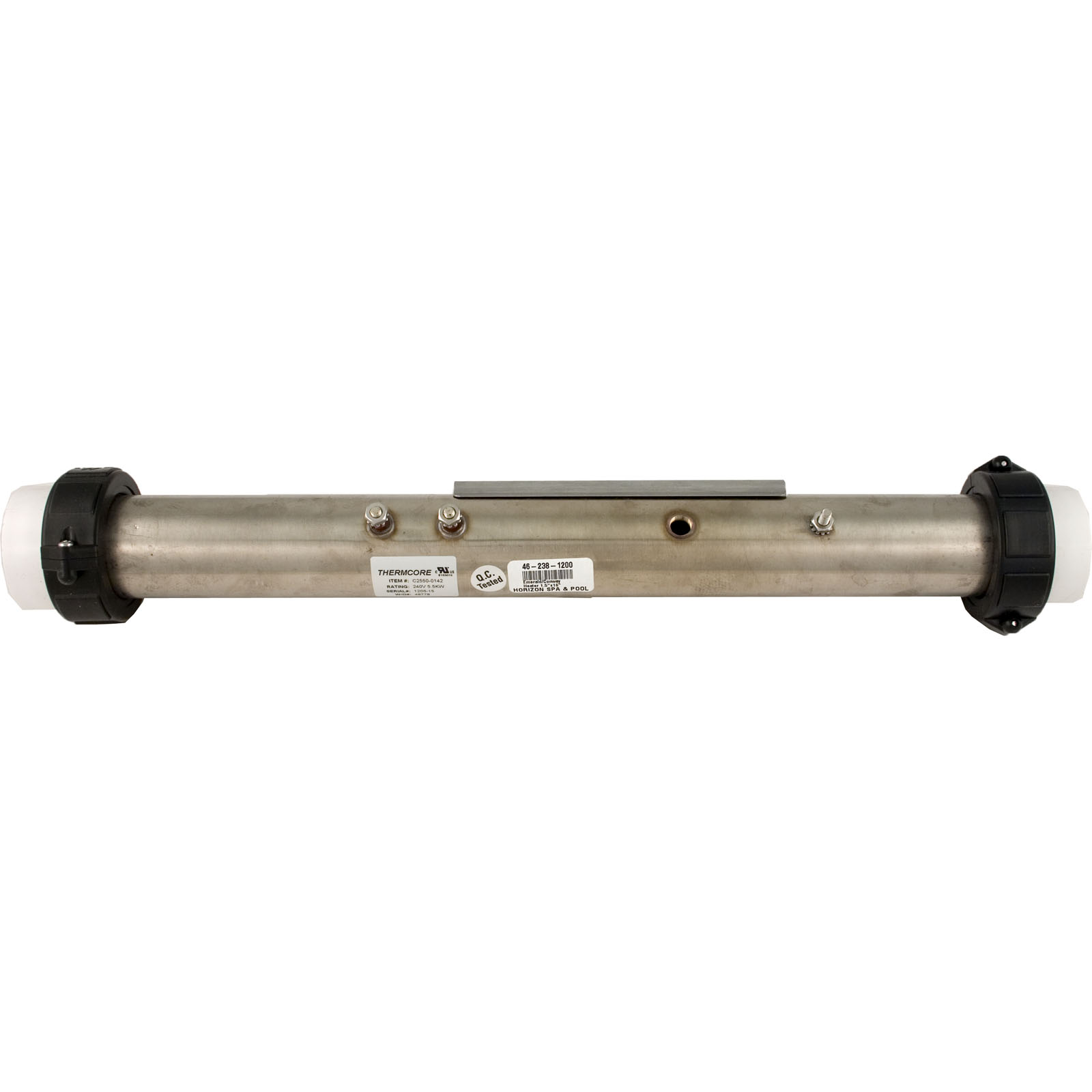 Replacement heater assembly. 1-1/2" x 16" manifold includes a 5.5kW/230v element, split nuts, gaskets and tailpieces.
