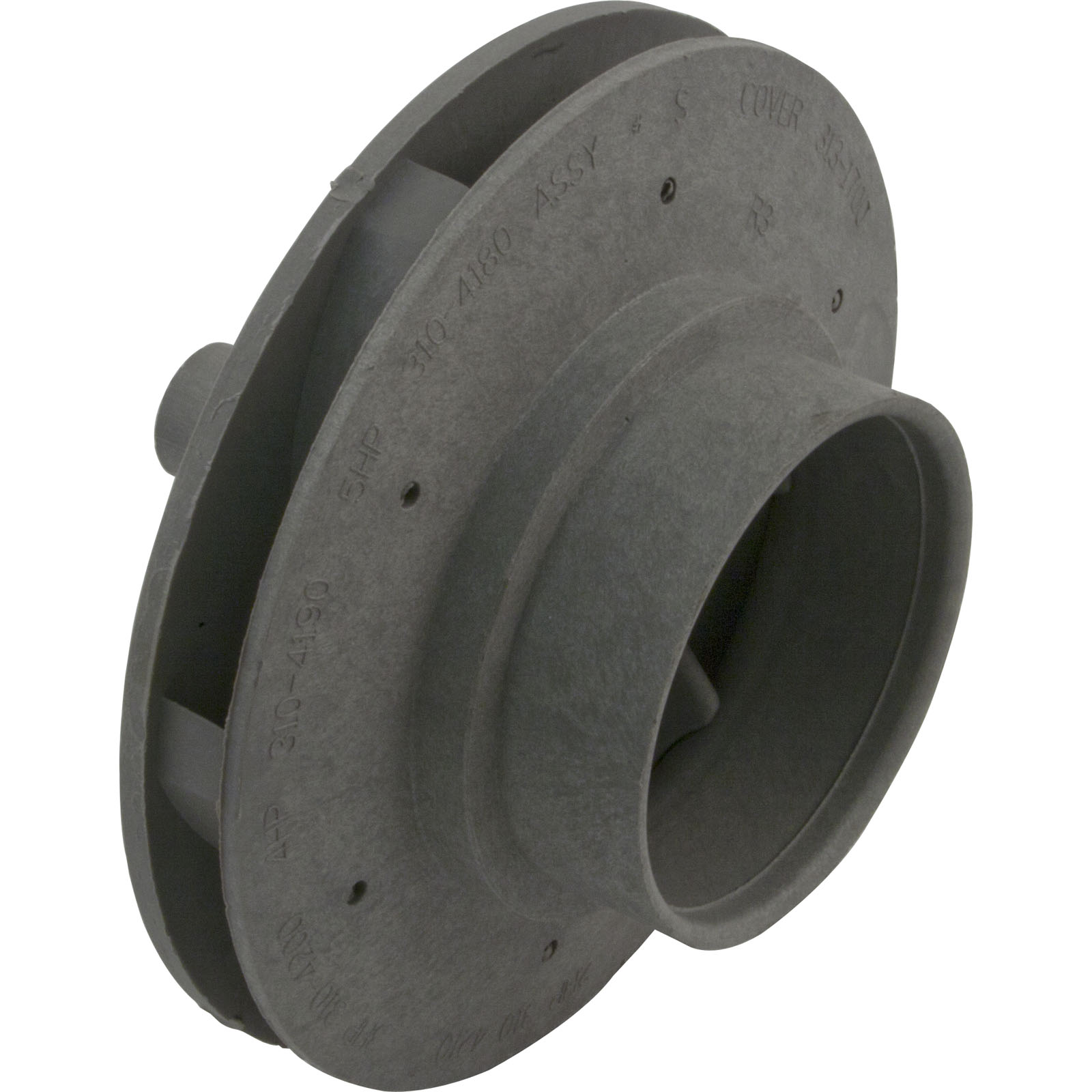 Closed face impeller made for the Executive pump by Waterway Plastics. Rated at 3.0hp, it is used in a Waterway Executive pump wetend, and must be installed on a 3.0hp (or greater) thru bolt motor.