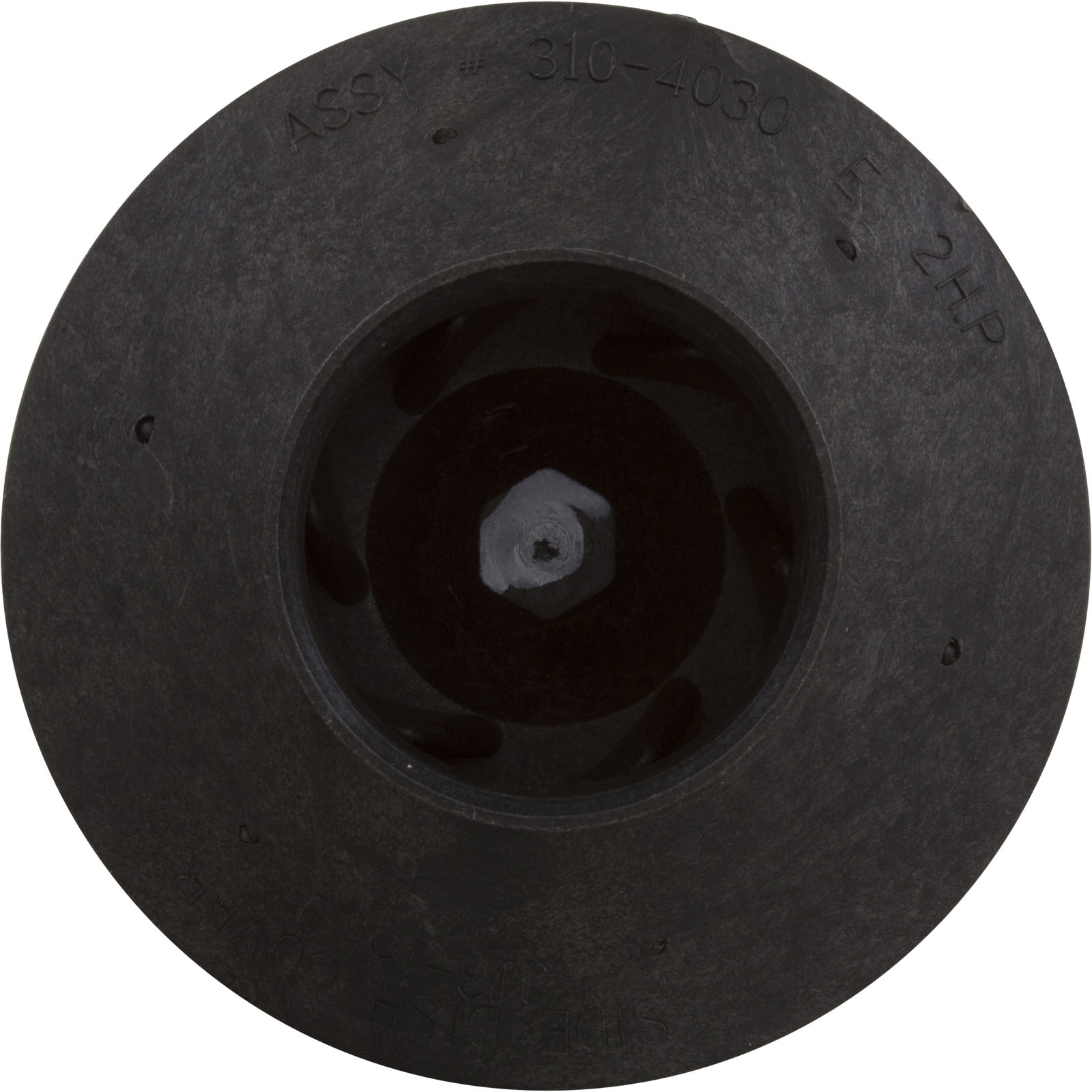Closed face impeller made for the HiFlo side discharge pump by Waterway Plastics. Rated at 2.0hp, it is used in a Waterway HiFlo pump wetend, and must be installed on a 2.0hp (or greater) thru bolt motor.