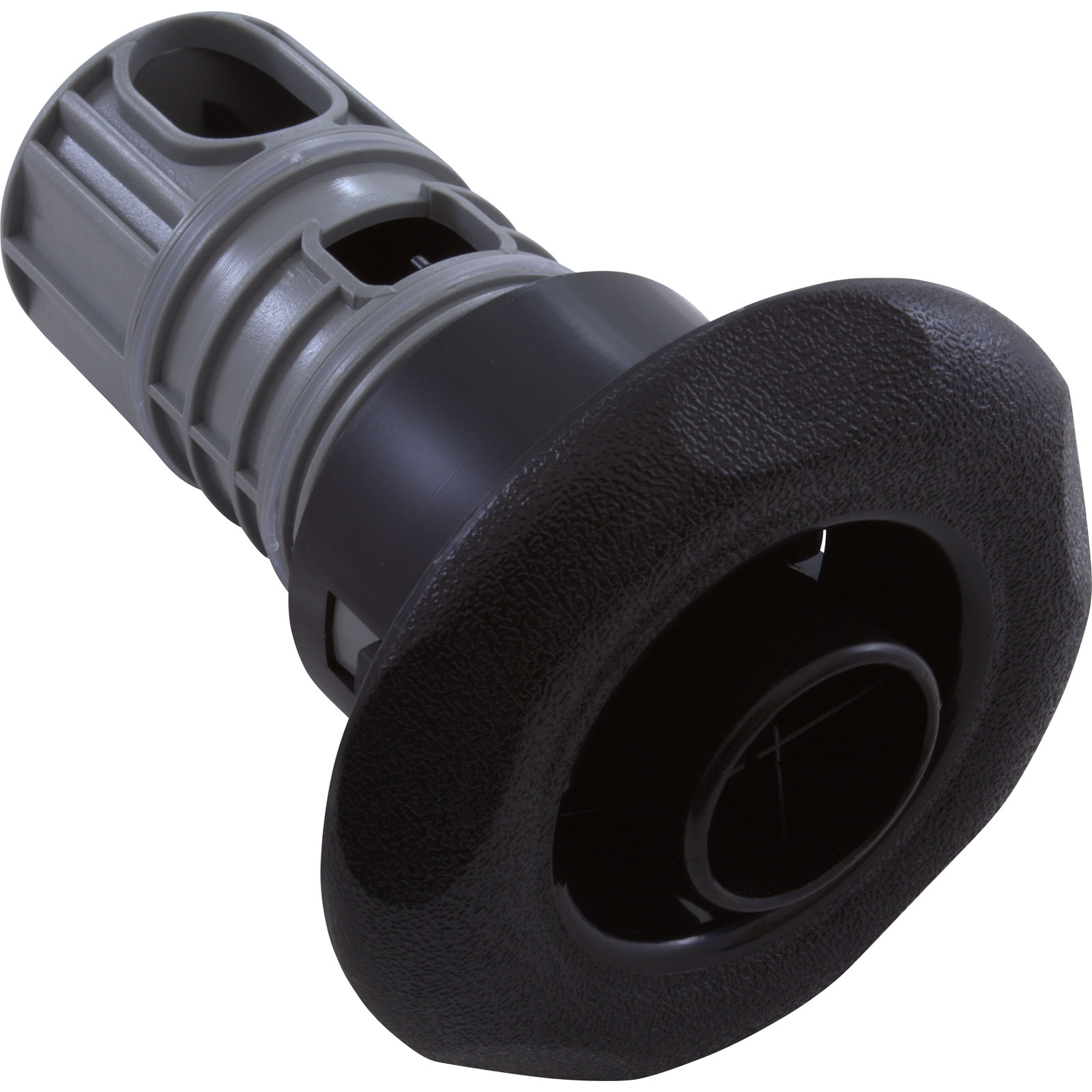 Jet Internal, Balboa Water Group/Pentair Luxury. Black, 3-1/2" Textured Scalloped face, with Directional style internal and Adjustable on/off control. Available in additional colors and styles.