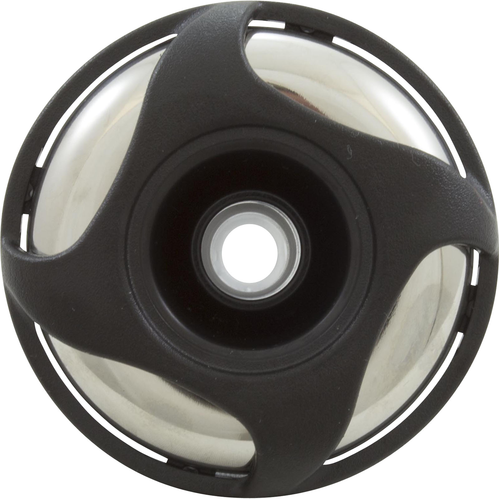 Jet Internal, Waterway Cluster Storm with Snap-In diffuser. Stainless Steel and Black, 2-1/4" Swirl face, with Directional style internal and Adjustable on/off control. Available in additional colors and styles.