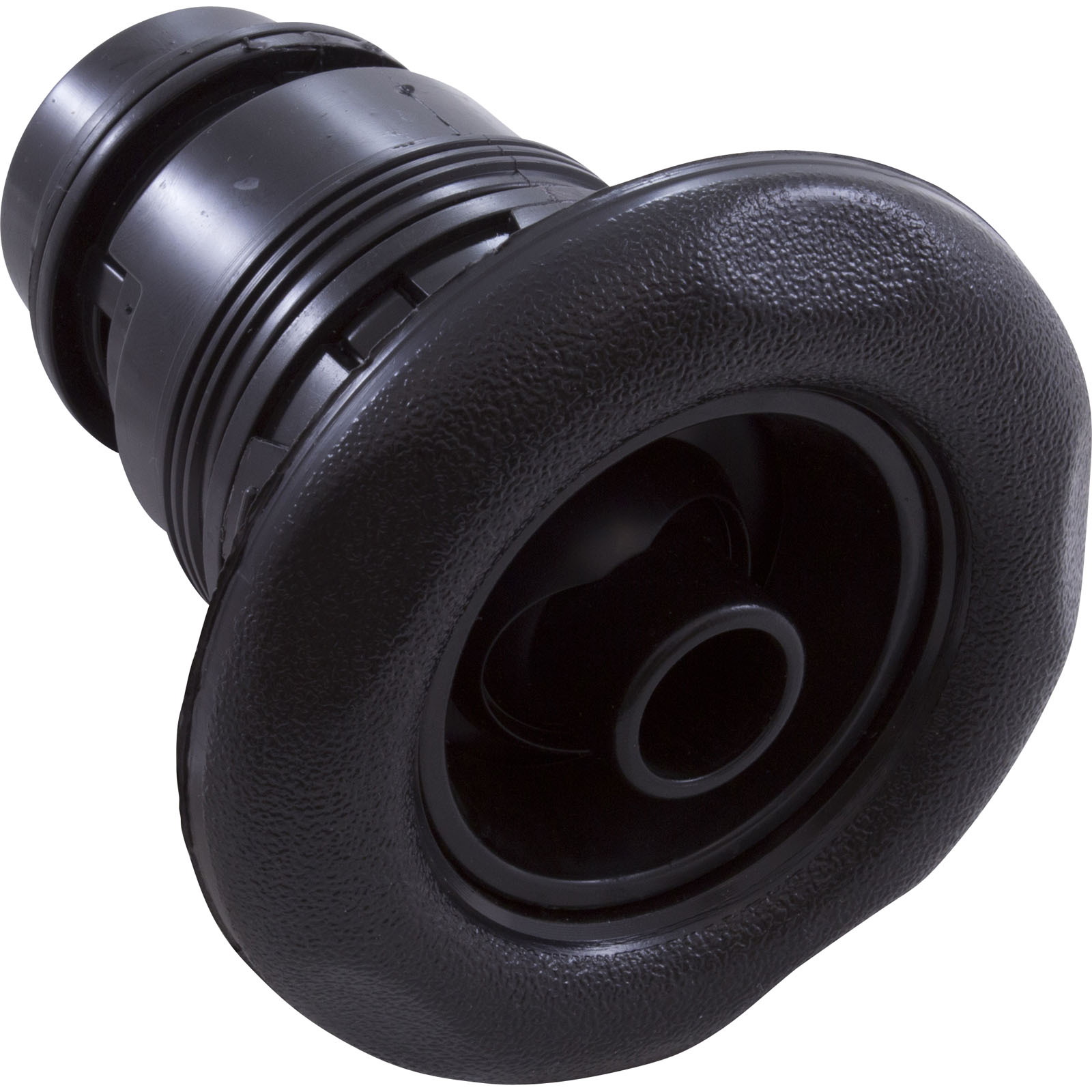 Jet Internal, Waterway Poly Jet. Black, 3-3/8" Textured Scalloped face, with Roto style internal and Adjustable on/off control. Available in additional colors and styles.