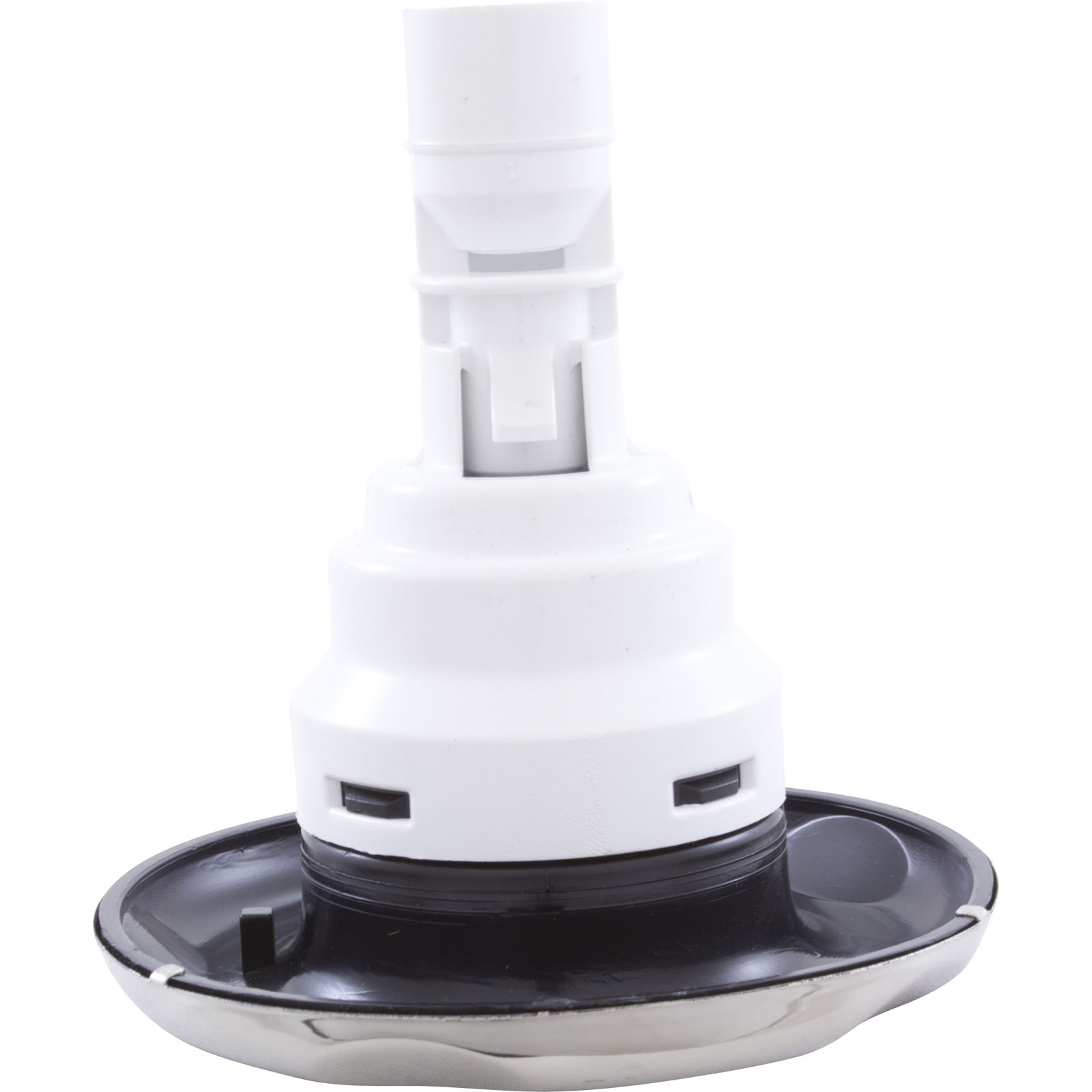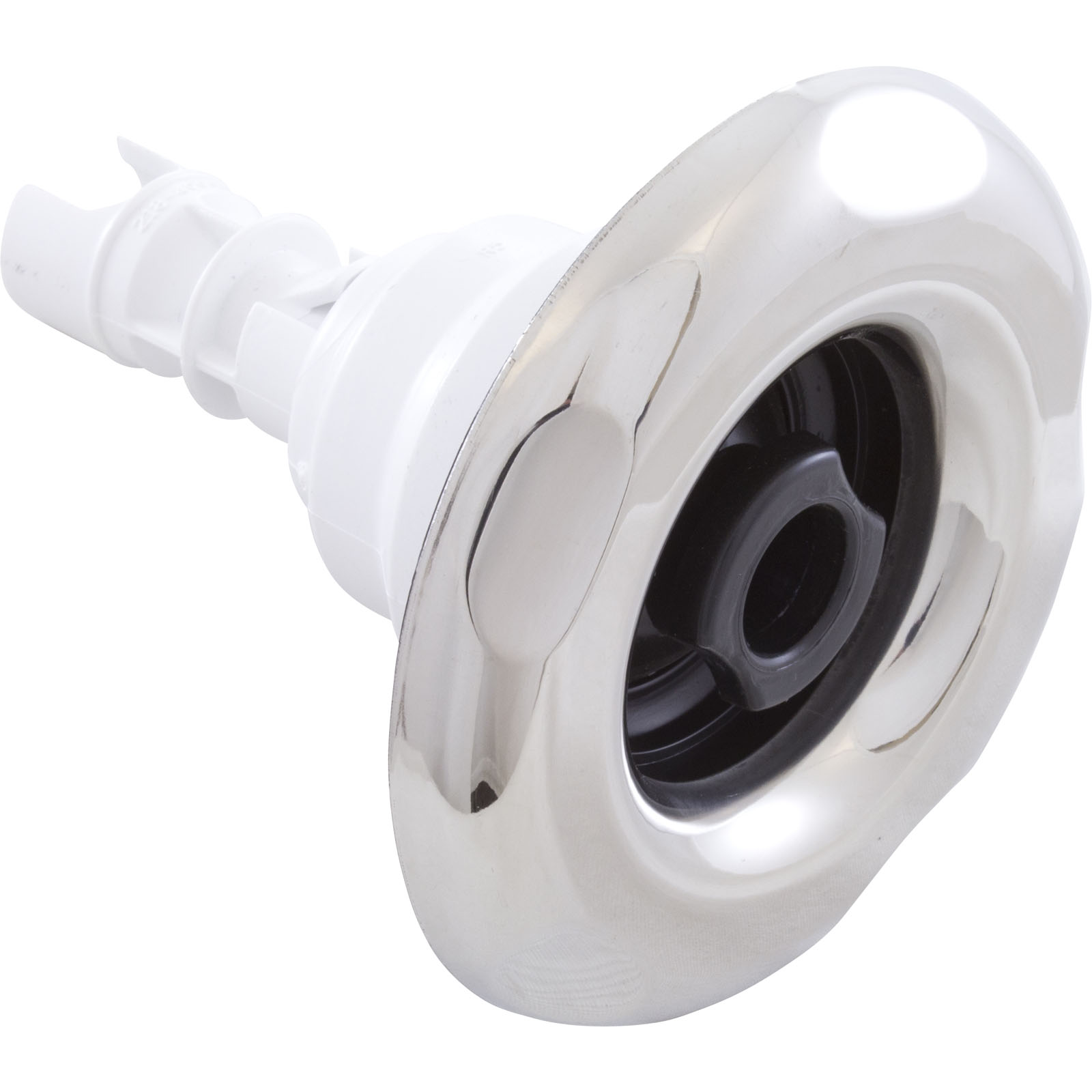 Jet Internal, Waterway Poly Storm with Snap-In diffuser. Stainless Steel and Black, 4" Large Scalloped face, with Directional style internal and Adjustable on/off control. Available in additional colors and styles.