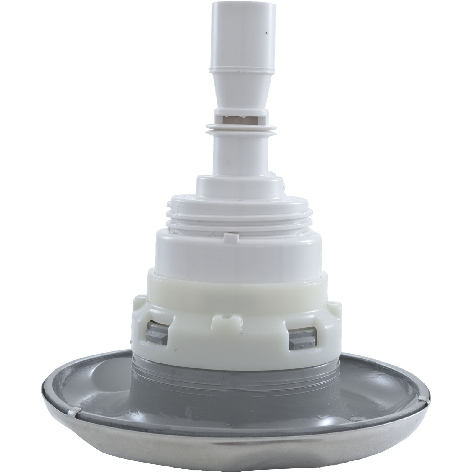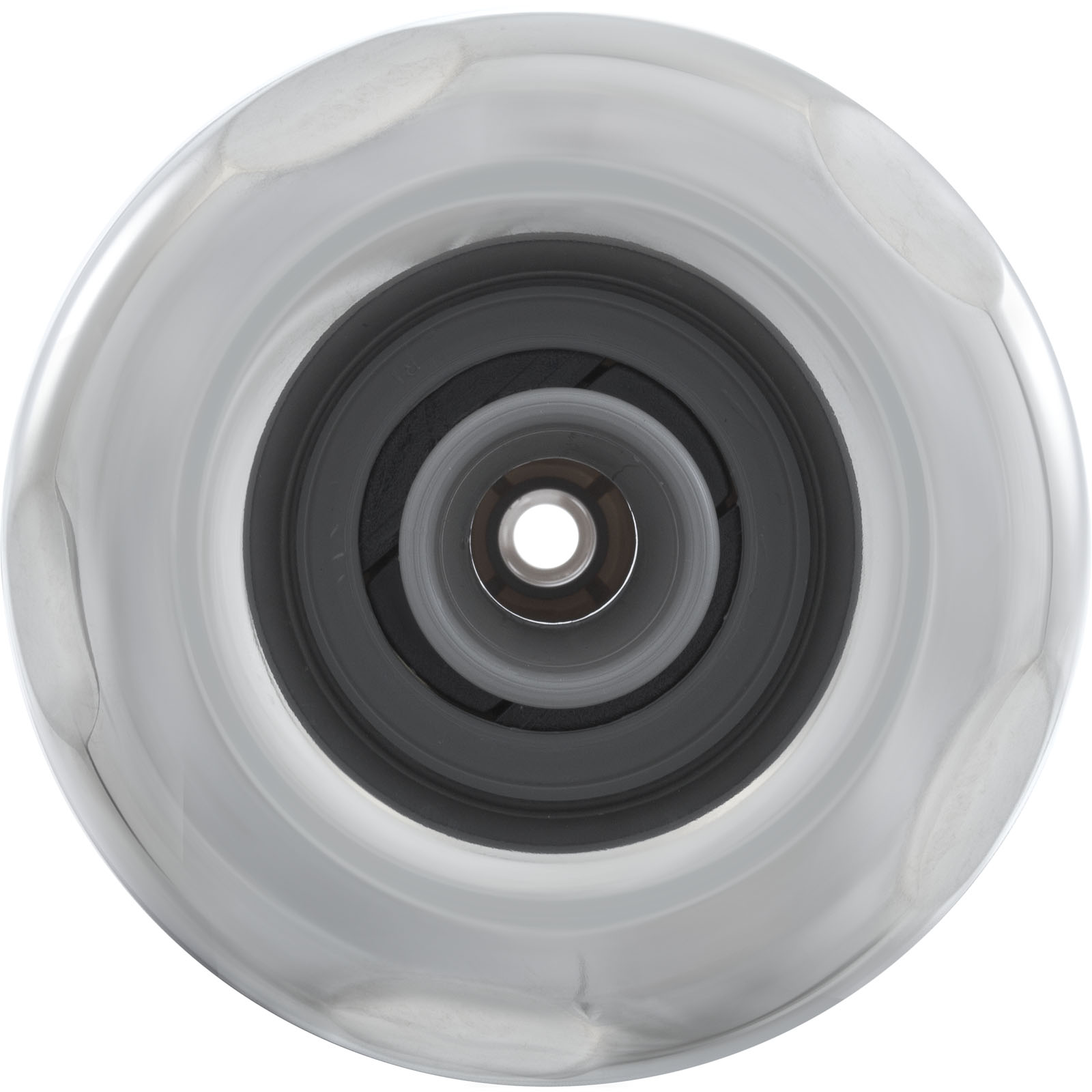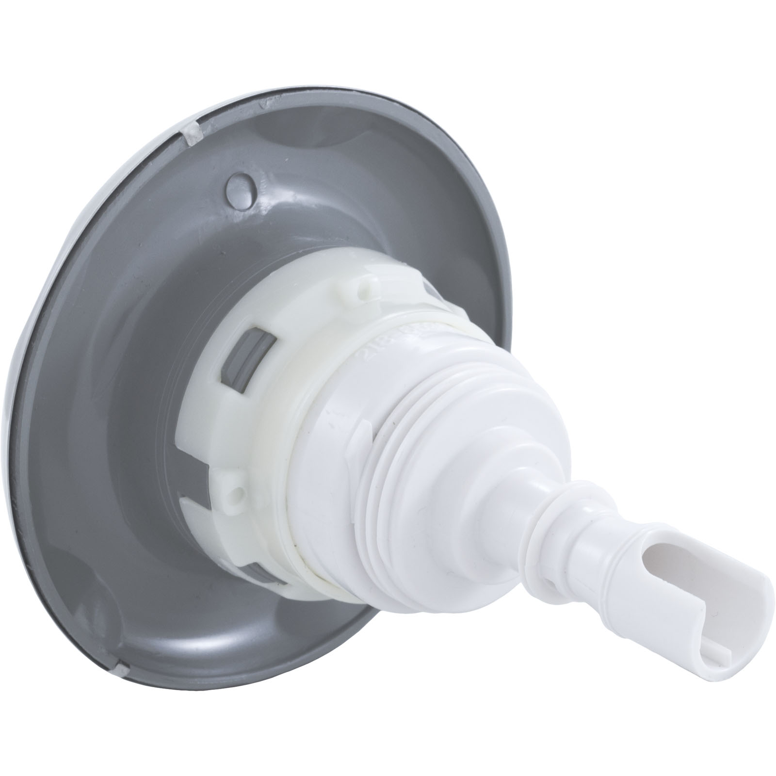 Jet Internal, Waterway Poly Storm with Thread-In diffuser. Stainless Steel and Gray, 4" Smooth Scalloped face, with Directional style internal and Adjustable on/off control. Available in additional colors and styles.