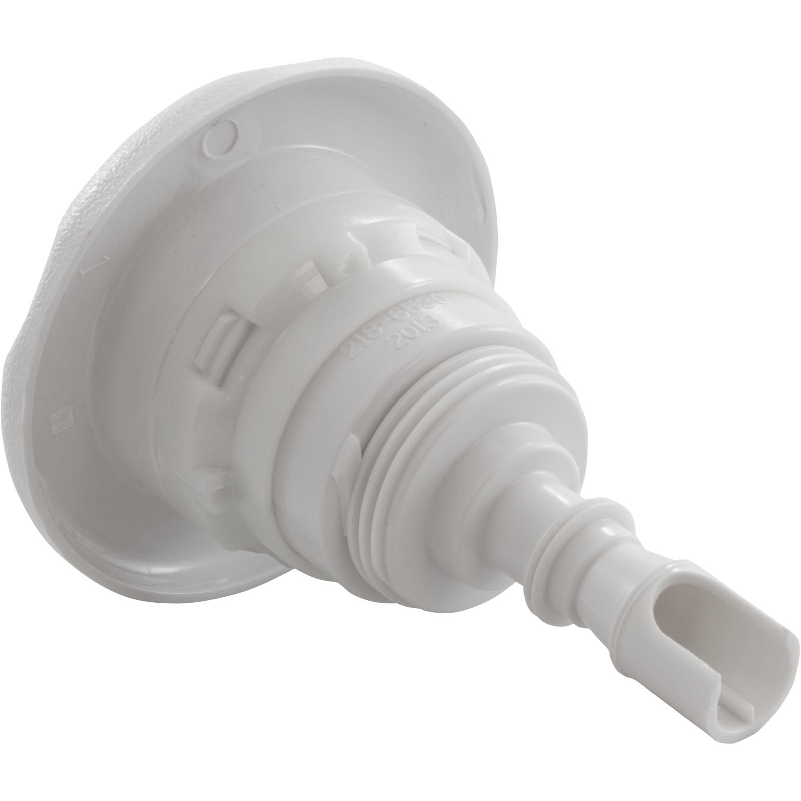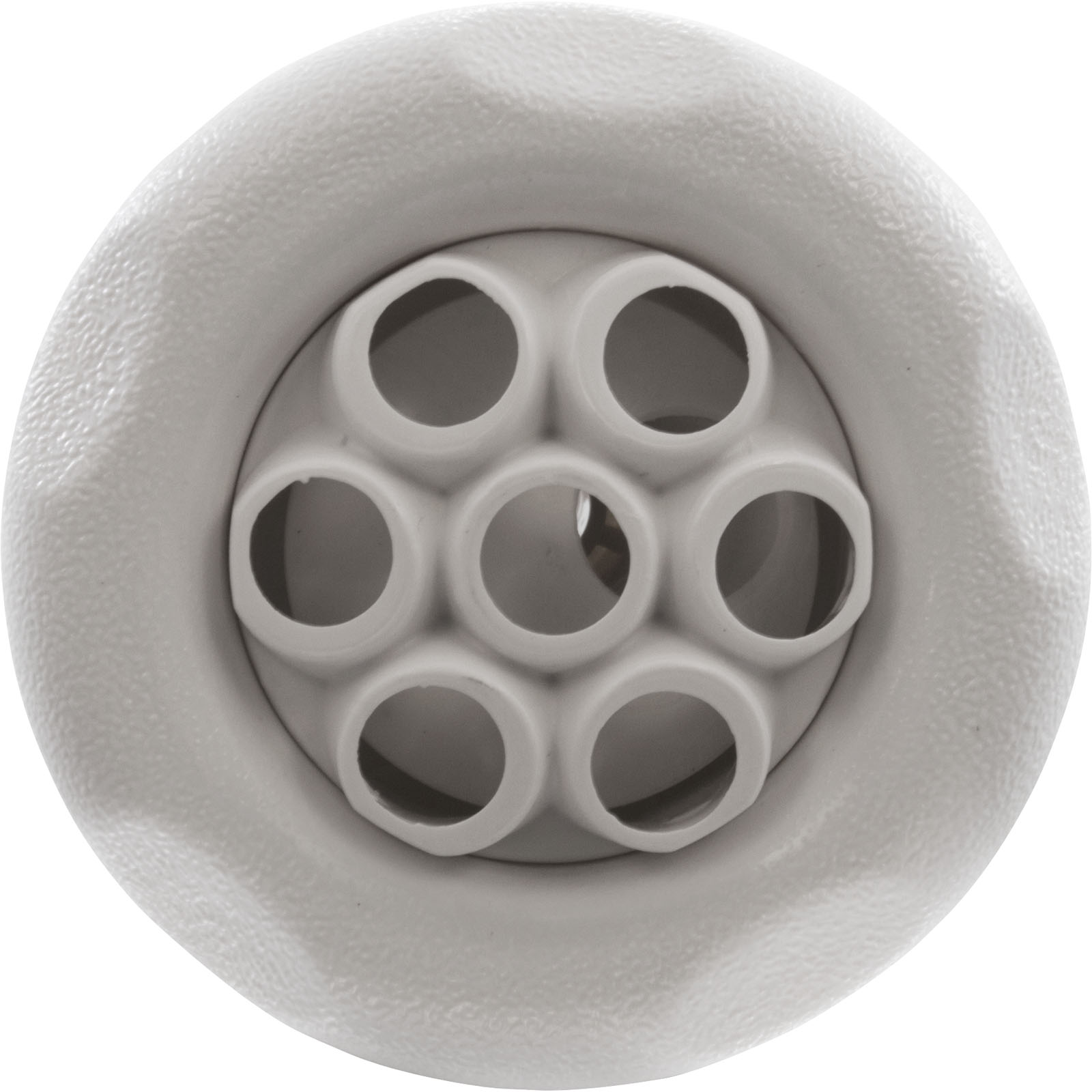 Jet Internal, Waterway Poly Storm with Thread-In diffuser. White, 3-3/8" Textured Scalloped face, with Massage style internal and Adjustable on/off control. Available in additional colors and styles.