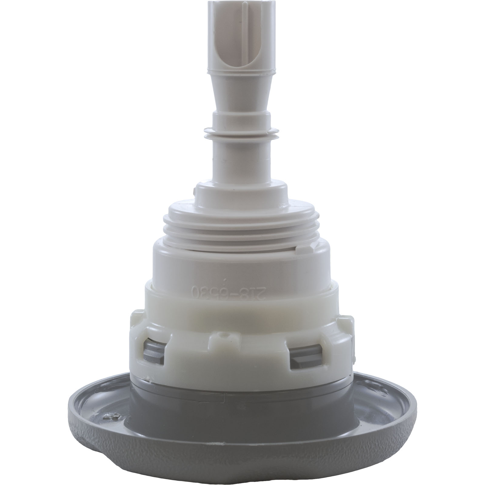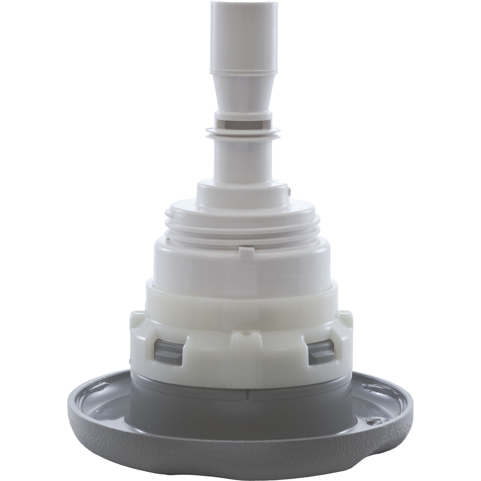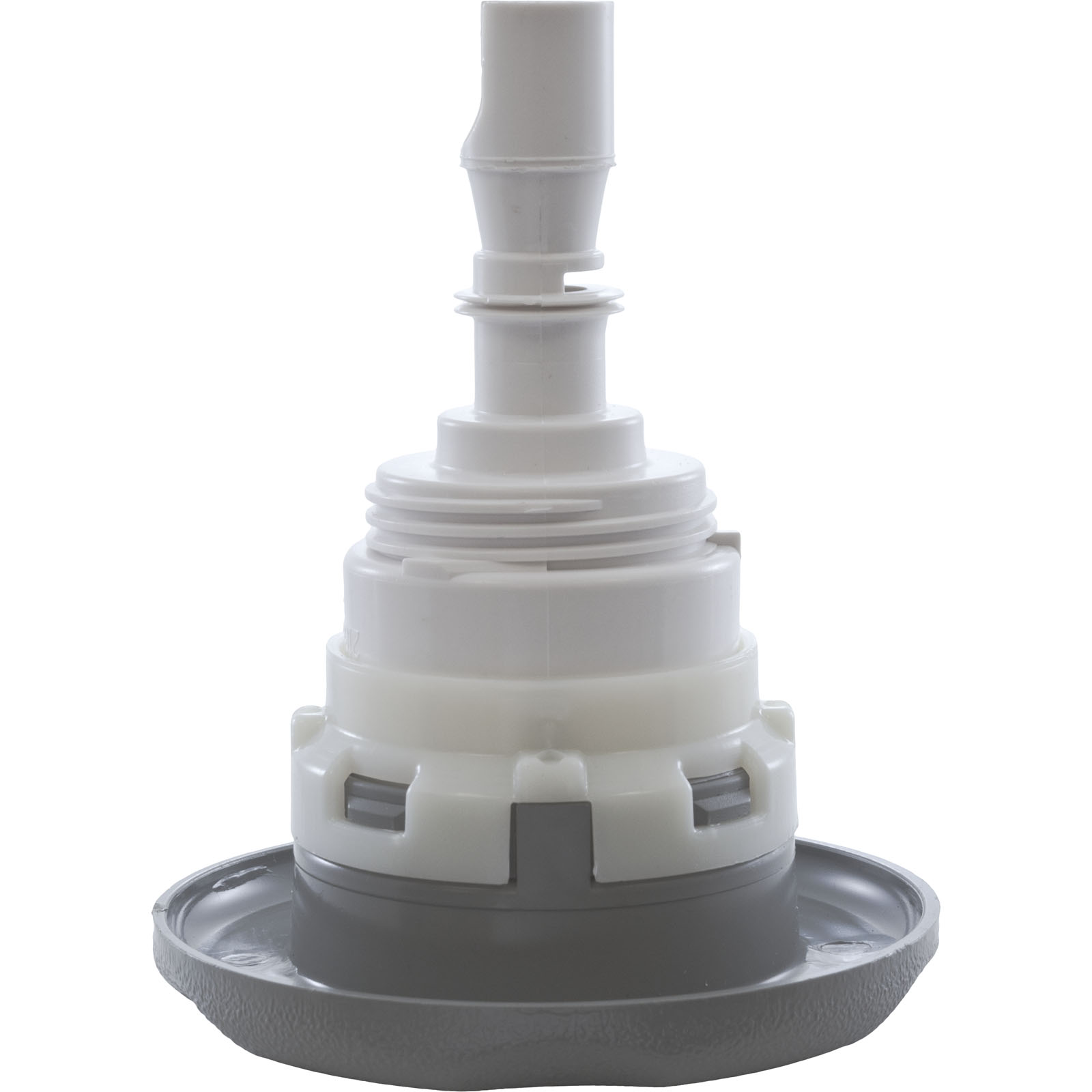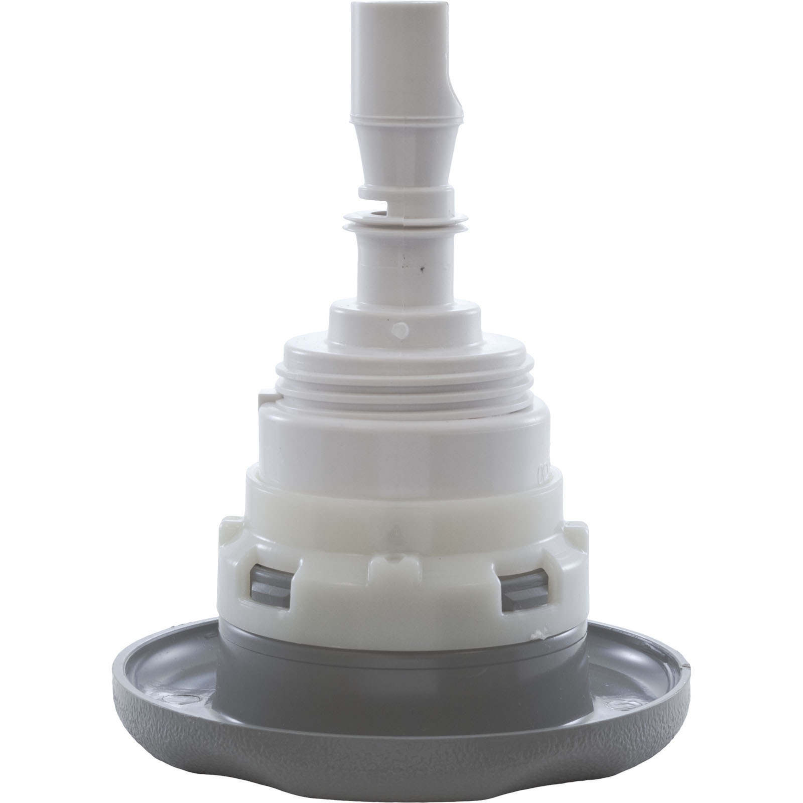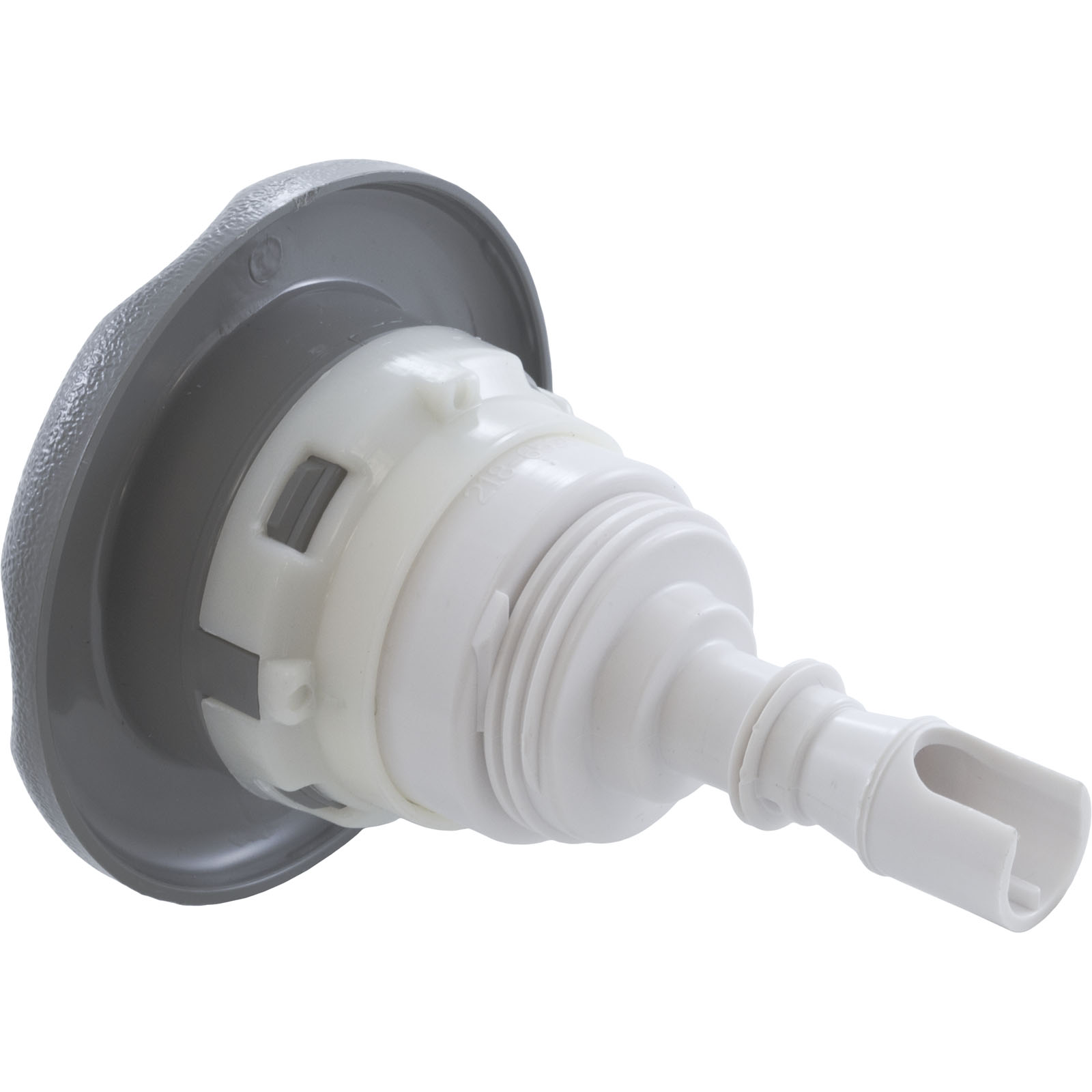Jet Internal, Waterway Poly Storm with Thread-In diffuser. Gray, 3-3/8" Textured Scalloped face, with Roto style internal and Adjustable on/off control. Available in additional colors and styles.