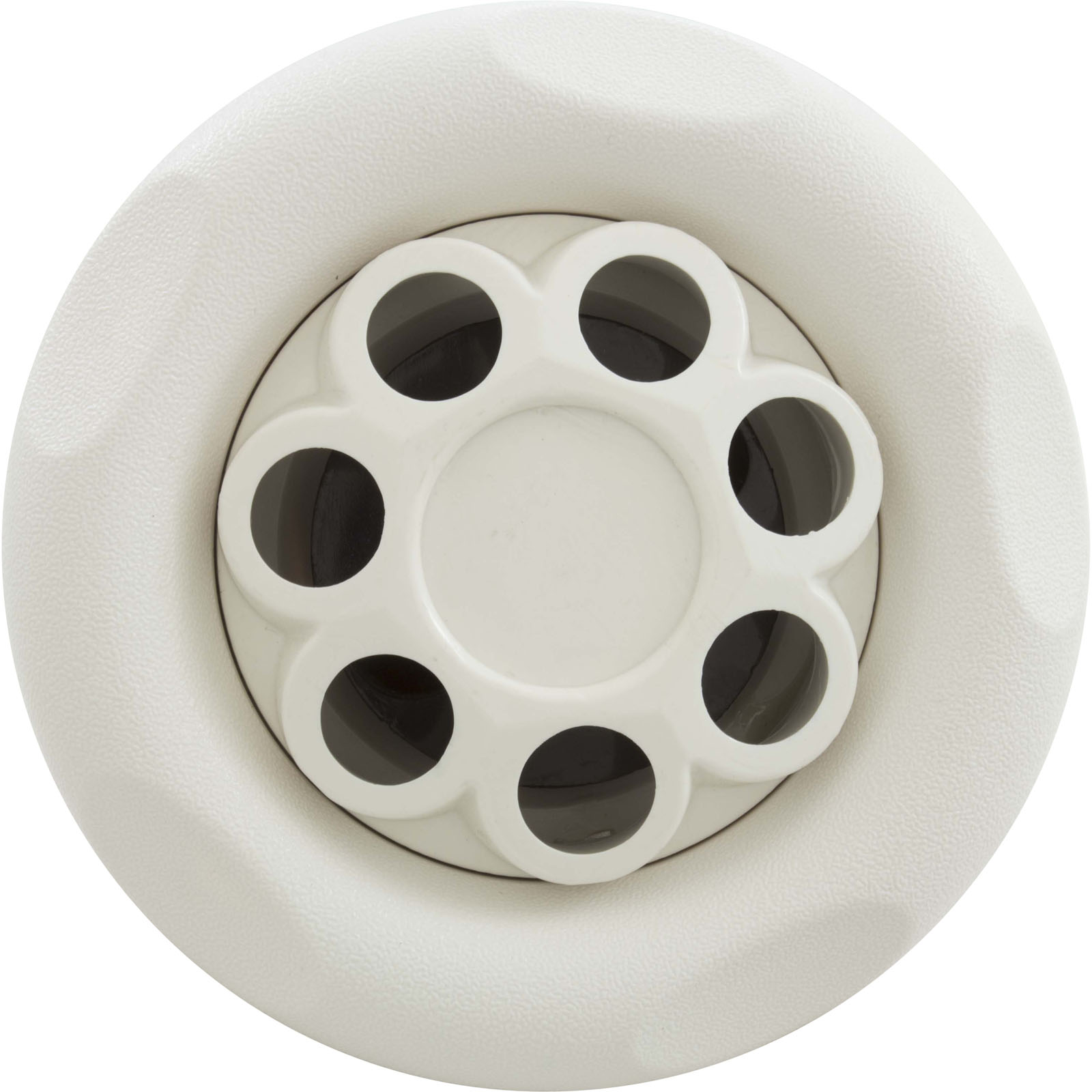 Jet Internal, Waterway Power Storm with Thread-In Gunite diffuser. White, 5" Textured Scalloped face, with Massage style internal and Adjustable on/off control. Available in additional colors and styles.