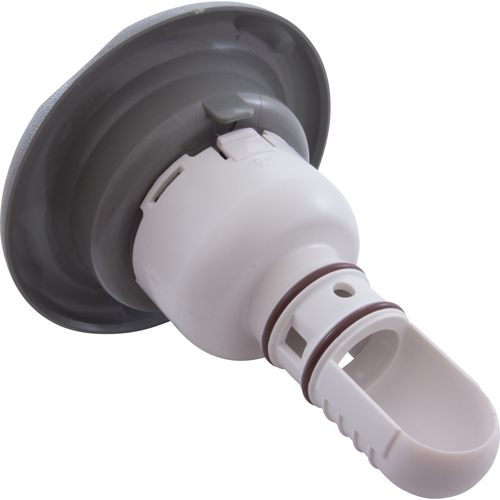 Jet Internal, Waterway Whirlpool. Gray, 5" Textured Scalloped face, with Directional style internal and Adjustable on/off control. Available in additional colors and styles. Includes nozzle tree.