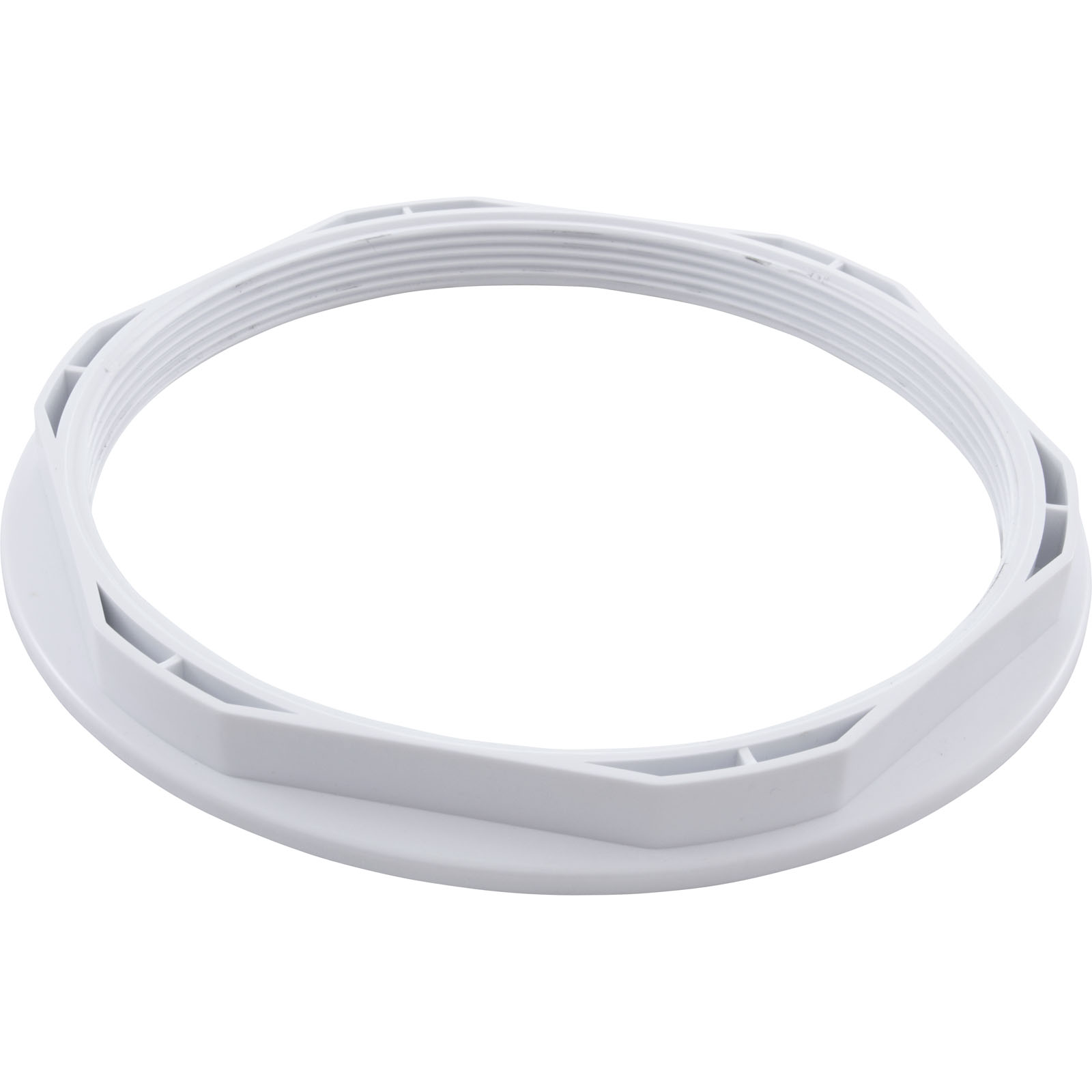 Nut for light housing adapter that is used to convert 9" light housings to 5" light housings. The 9" lights commonly found in Blue Falls Manufacturing/Arctic Spas applications were broken and cracked easily due to having a large surface area with little support.