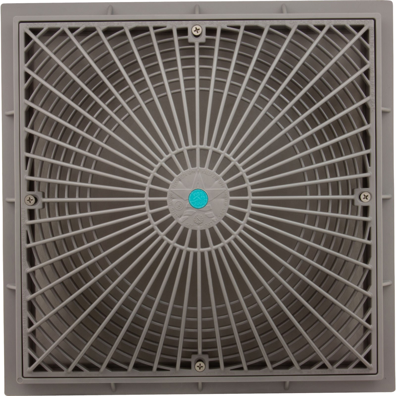 Main Drain Cover, Aquastar MoFlow,12" Square,w/Fr,Lt Gry,VGB