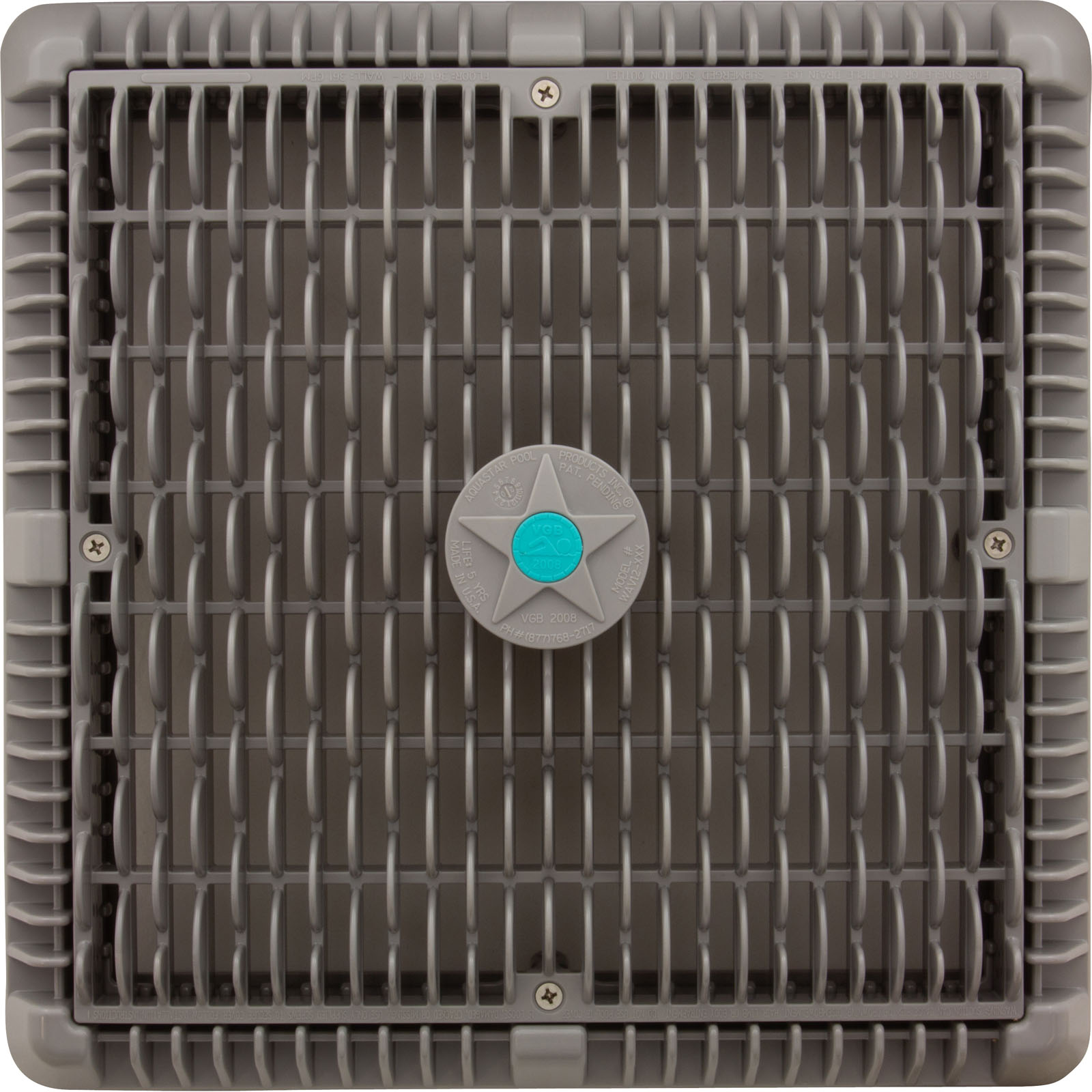 Main Drain Cover, Aquastar Wave,12" Square,w/Fr,Lt Gry, VGB