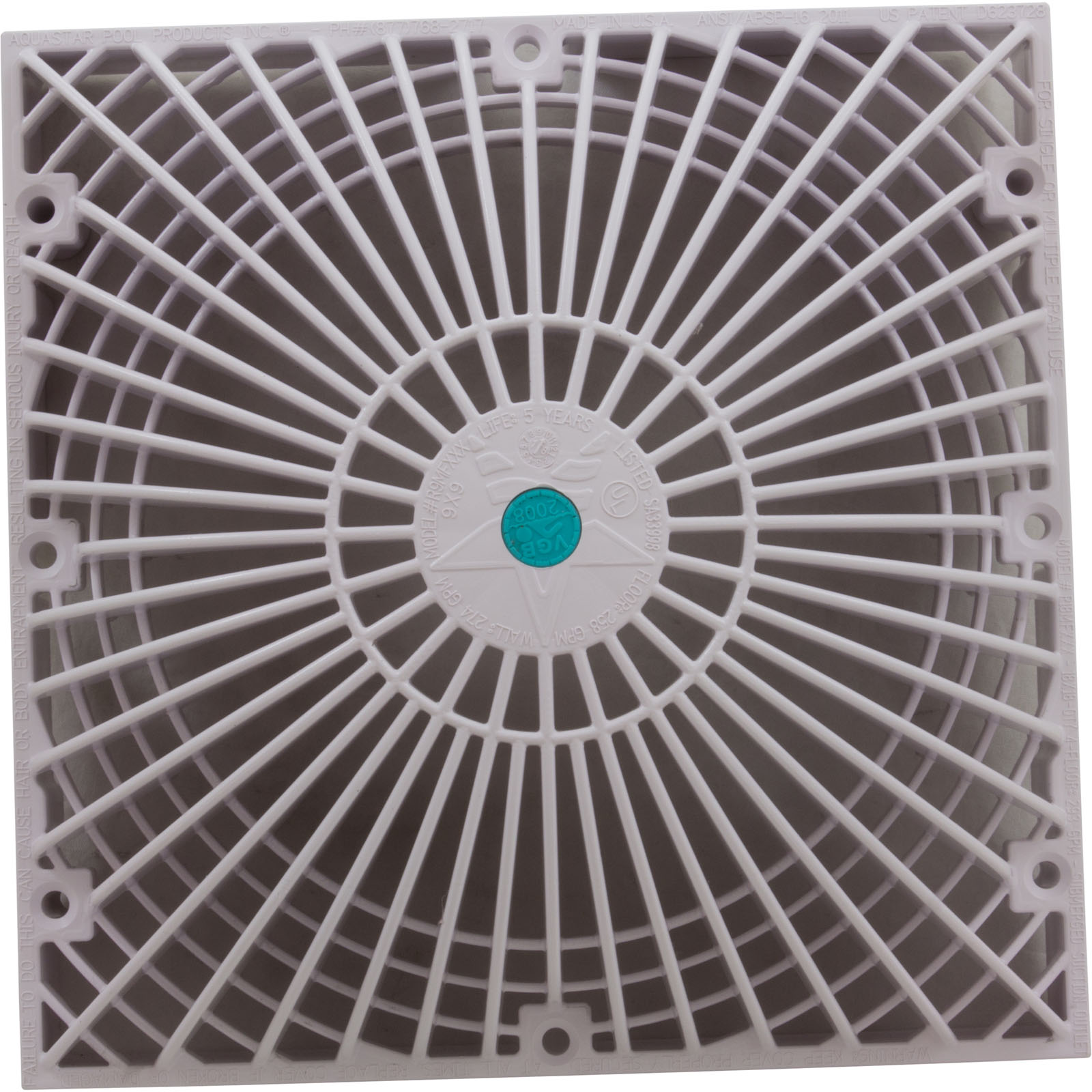 Main Drain Cover, AquaStar,Retro MoFlow,9" x 9",Square,White