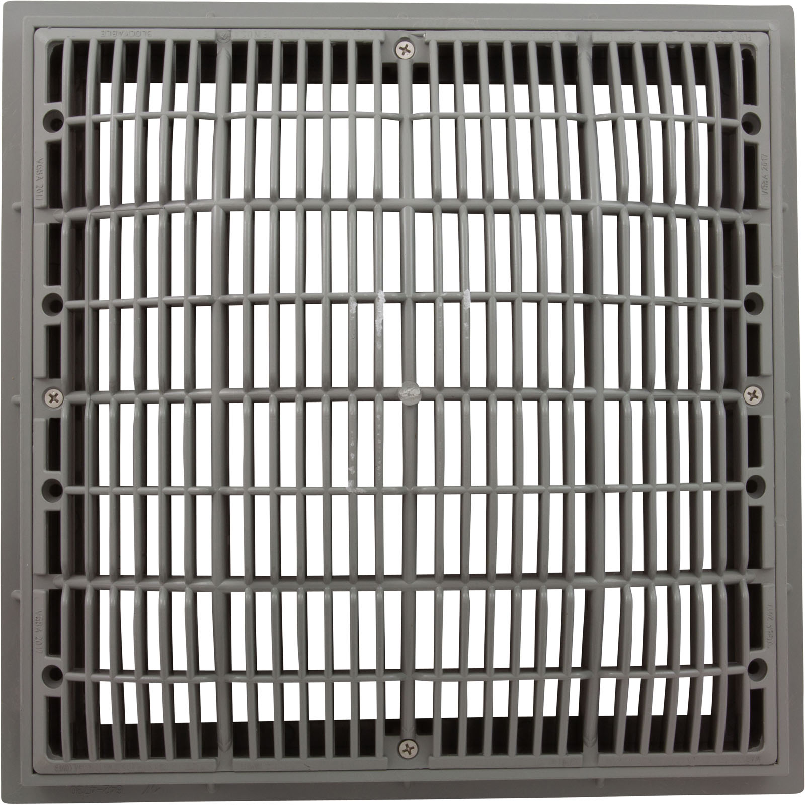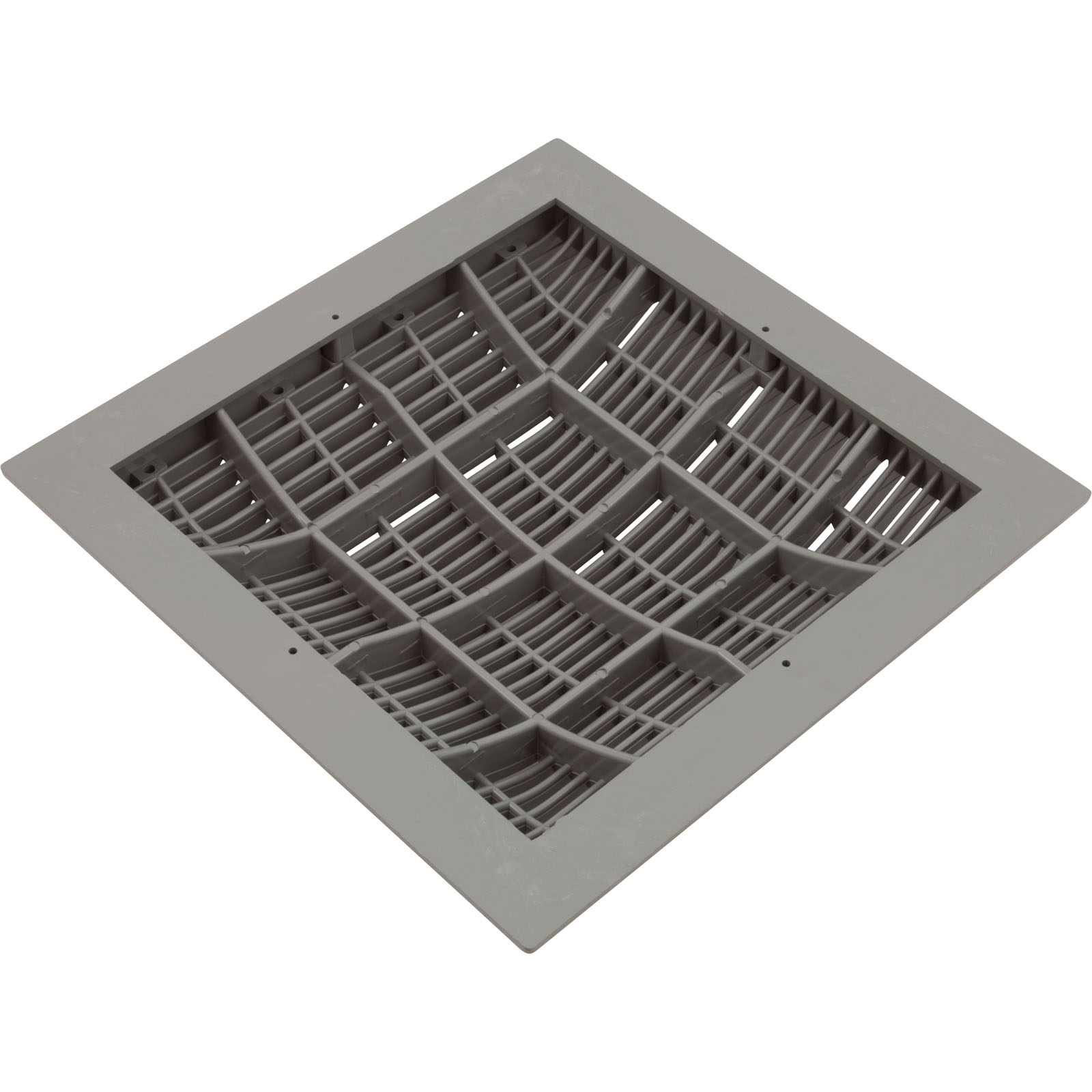 Main Drain Grate, Waterway, 12" x 12" Square, w/Frame, Gray