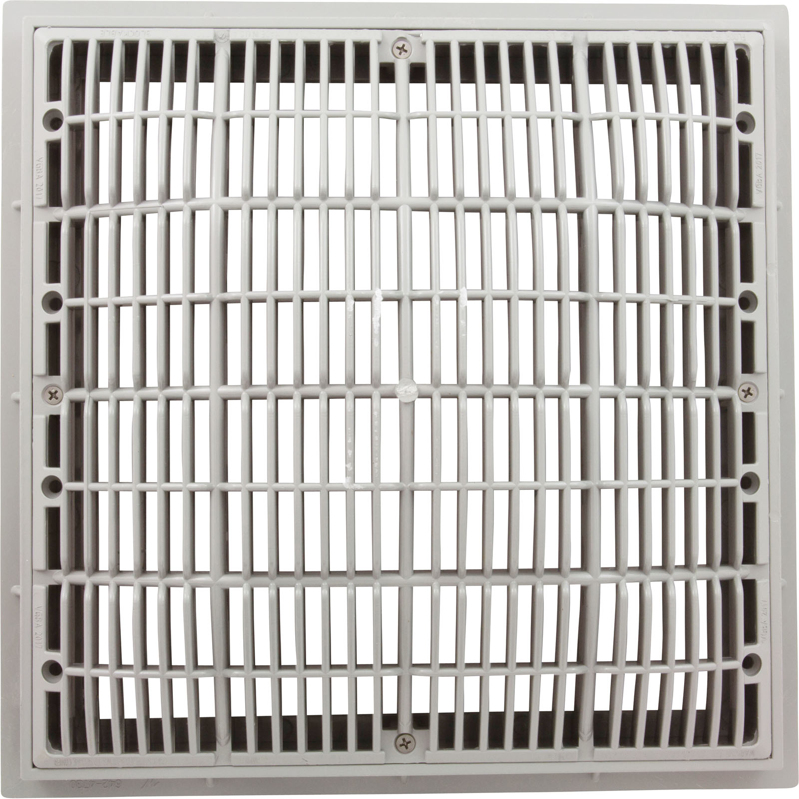 Main Drain Grate, Waterway, 12" x 12" Square, w/Frame, White
