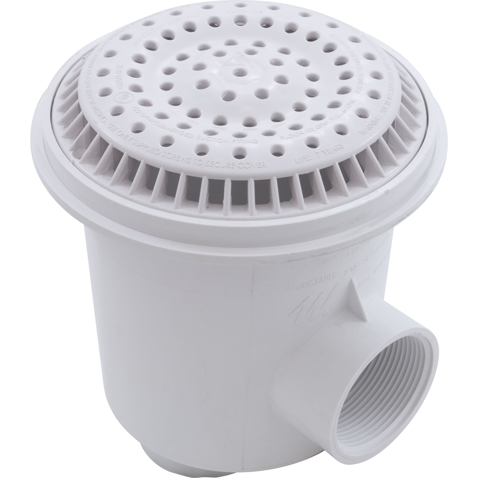 Main Drain, WW Anti Vortex, 8" Rnd, Gun, 2-1/2"fpt, White