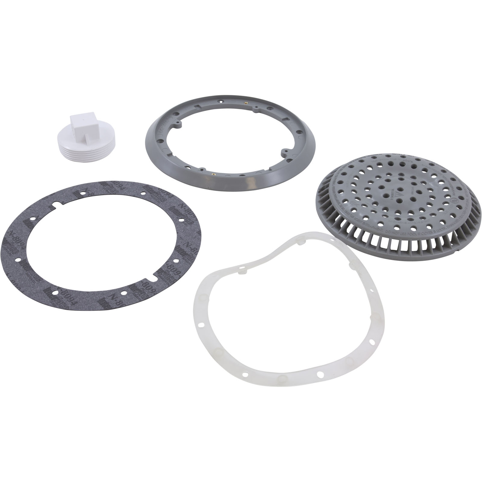 Main Drain, WW Anti Vortex, 8" Rnd, Vinyl, 2-1/2"s, Gray