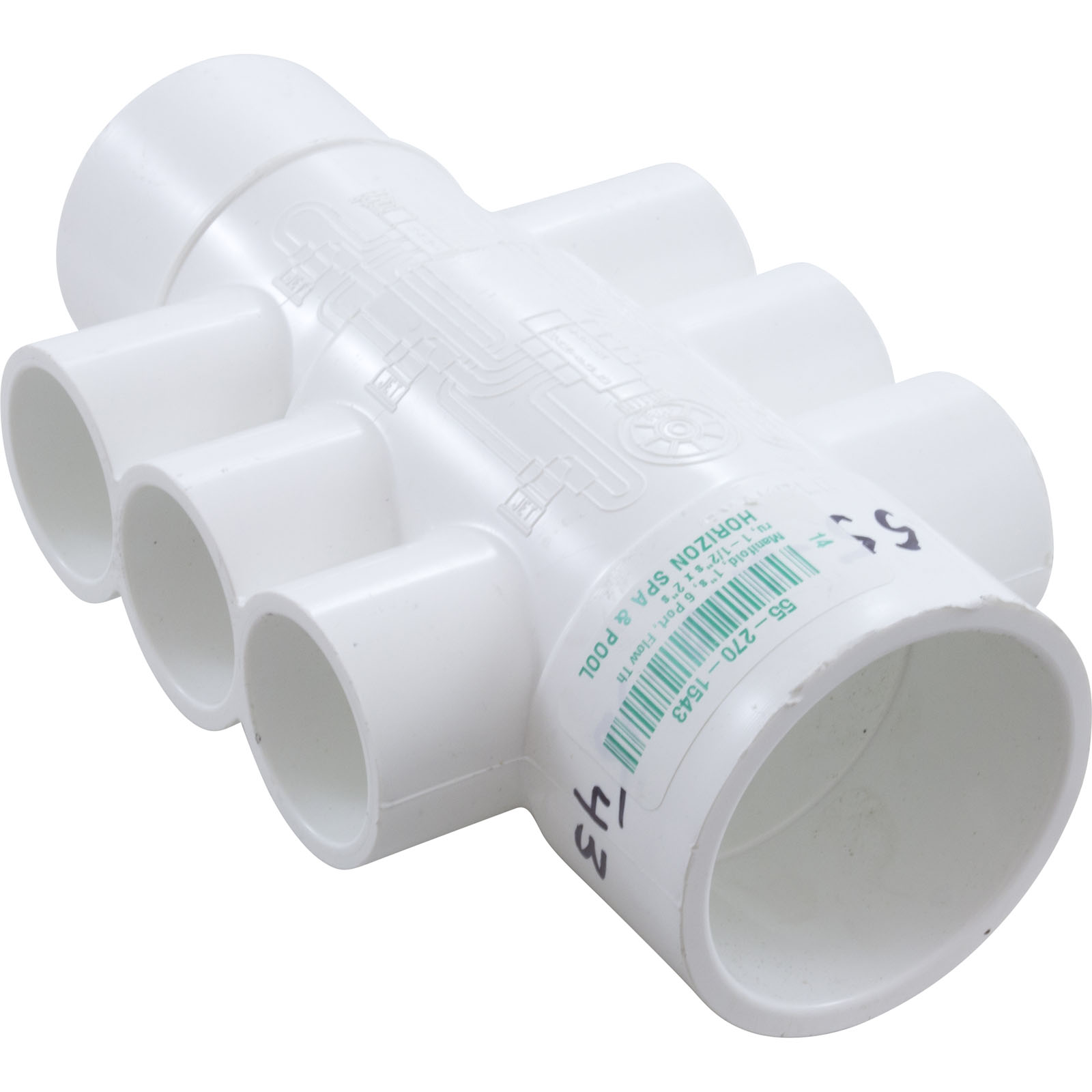 Manifold, 1"s, 6 Port, Flow Thru, 1-1/2"s/2"spg x 2"s