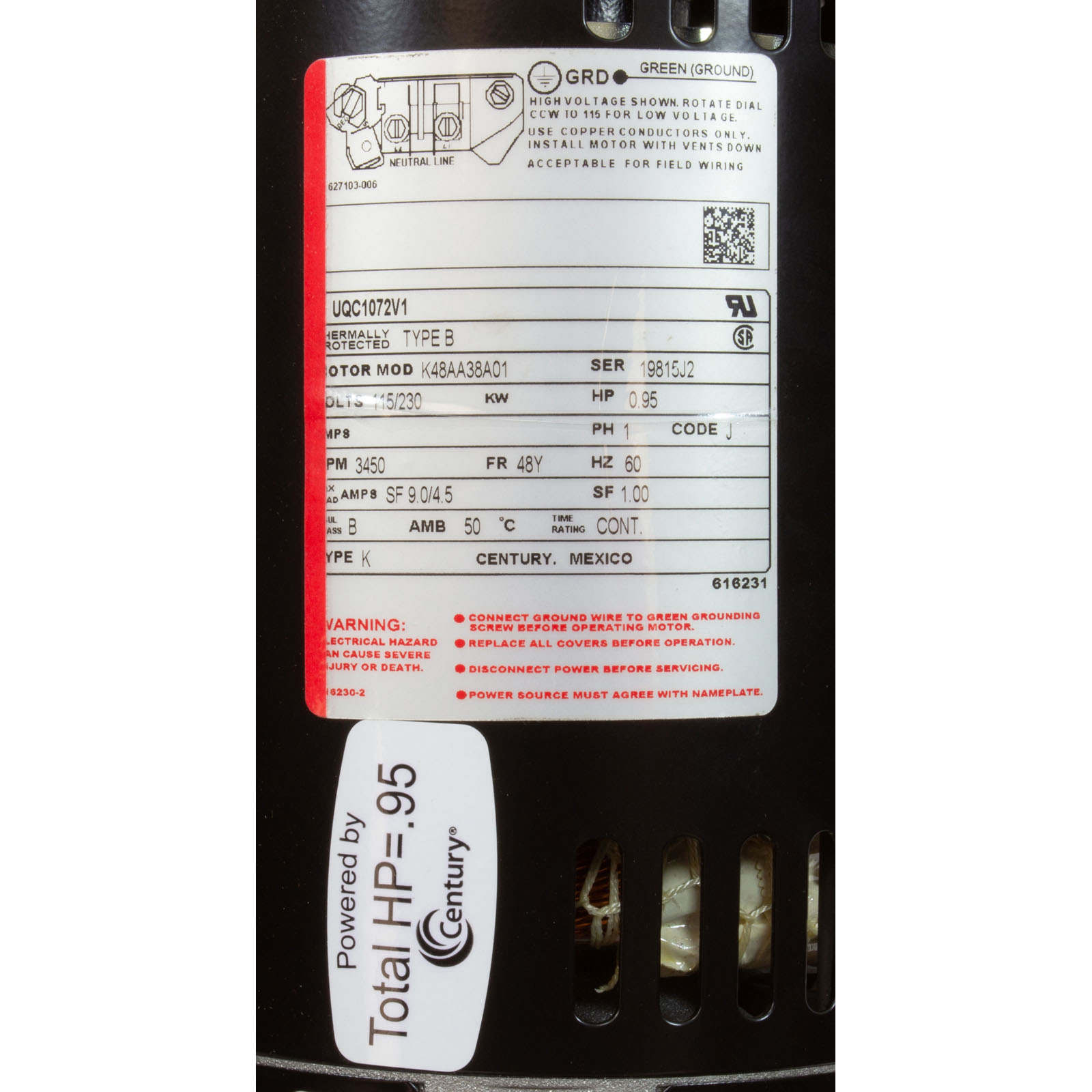 UQC1072V1 Motor Century 3/4hp 115v/230v 1-Spd 48Y SQFL Up Rate