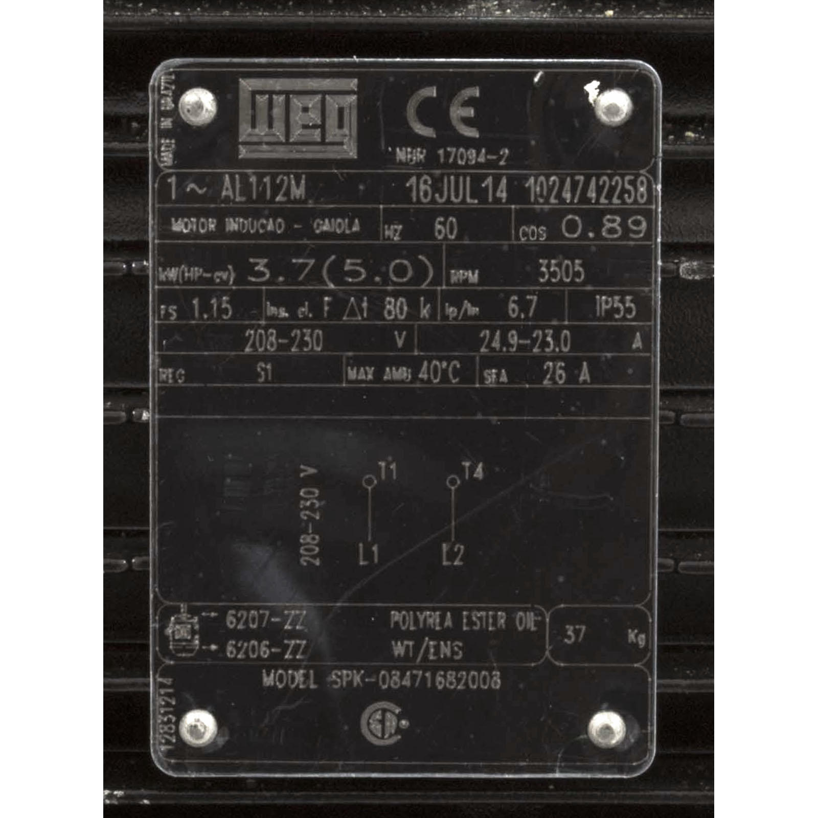 08471682008 Motor Century 5.0 Horsepower 208v-230v 1 Speed 112Mfr