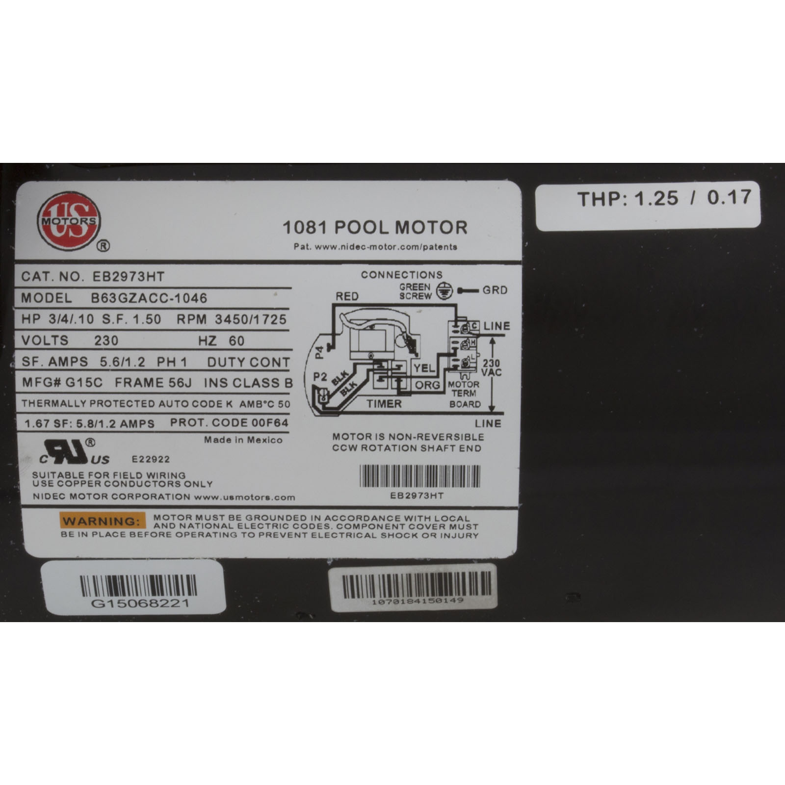 B63BZACC1046 Motor Century0.75hp230v2-Spd56CfrThd Badu EcoM2