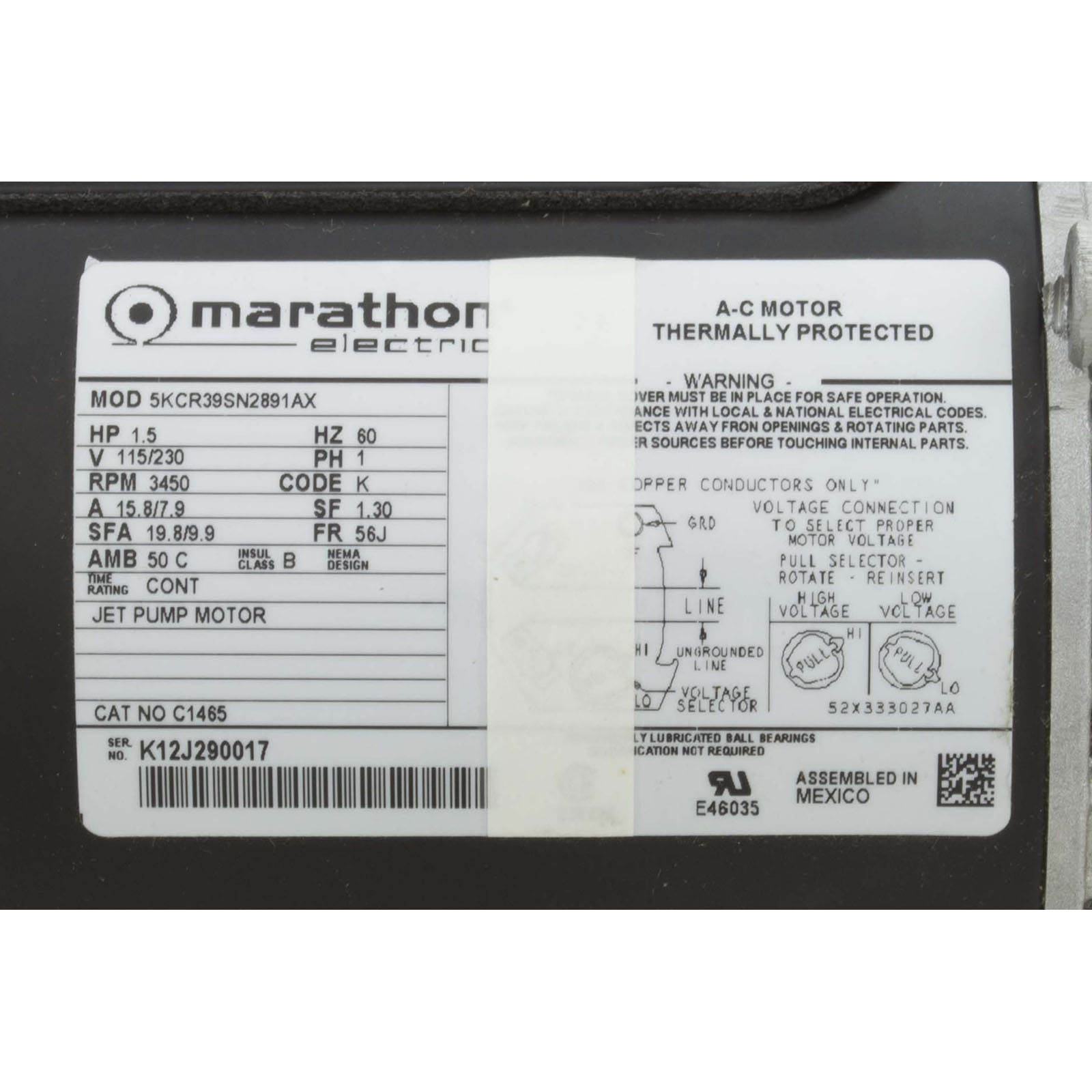 Motor, Marathon,1.5hp,115v/230v,1-Spd,56Jfr,C-face Thd