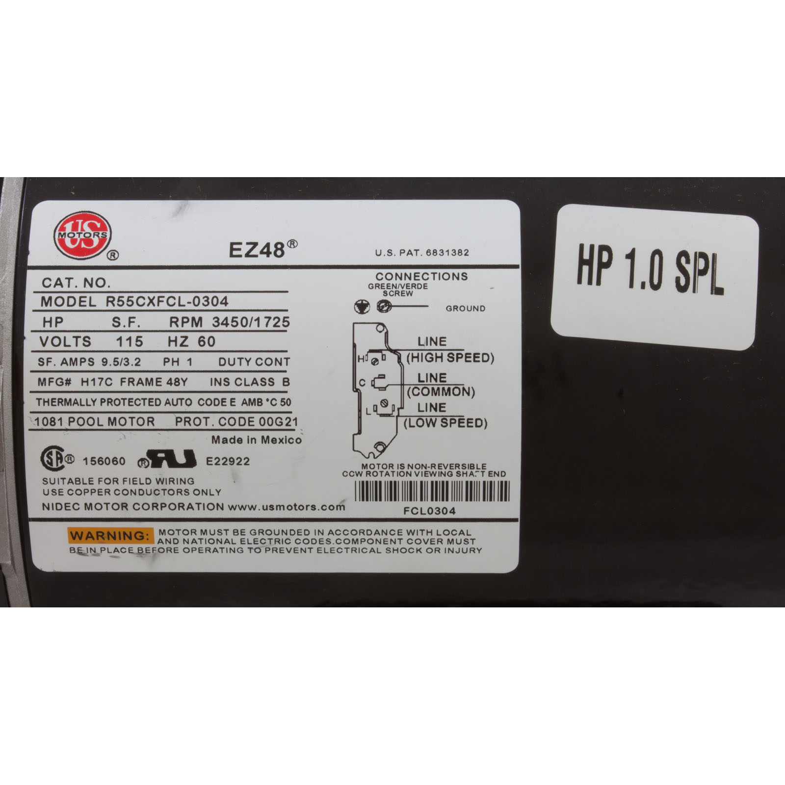 Motor, US Motor/WW, 1.0SPL, 115v, 2-Speed, 48 Frame