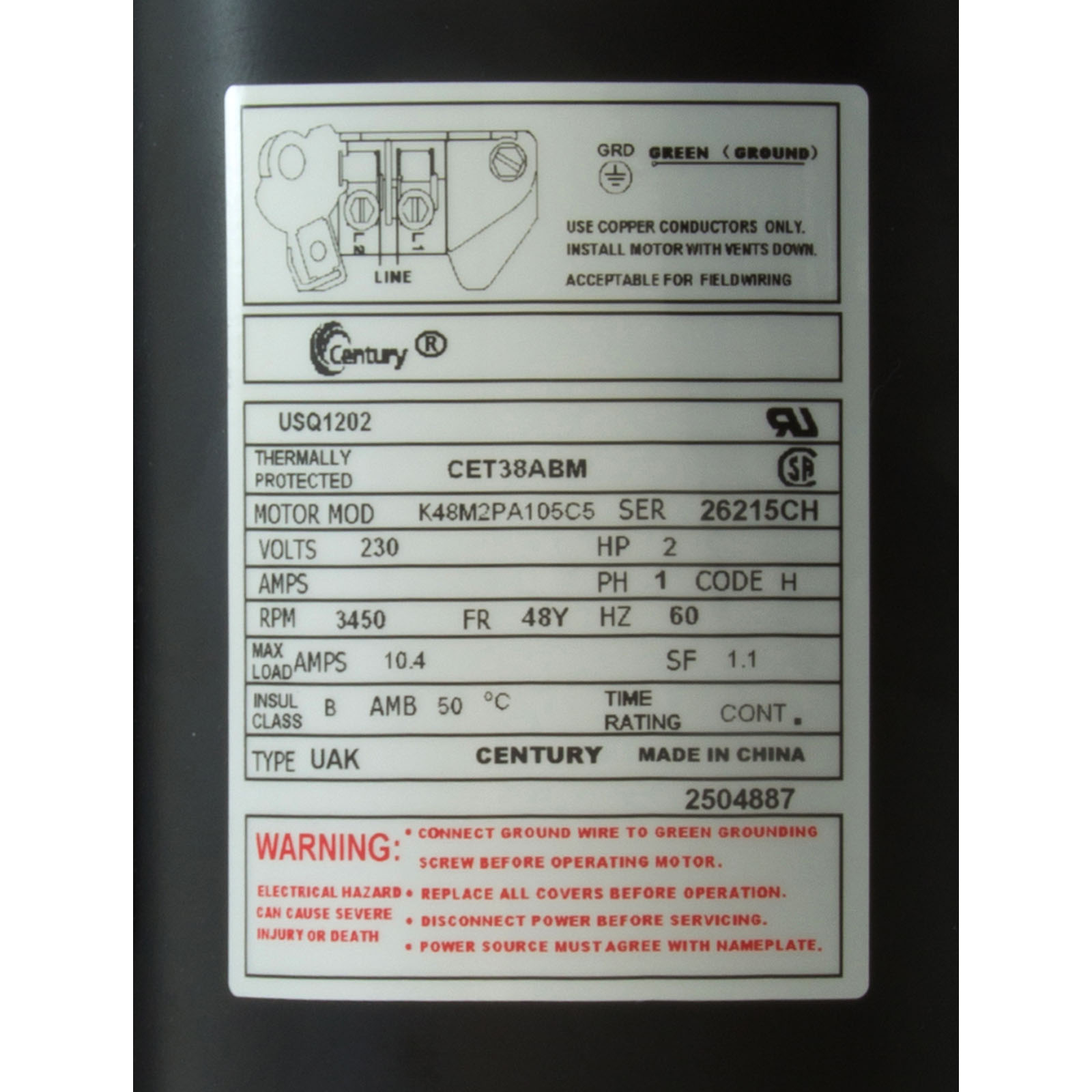 USQ1202 MtrCent2Hp230V1-SpSf1.148Yfr