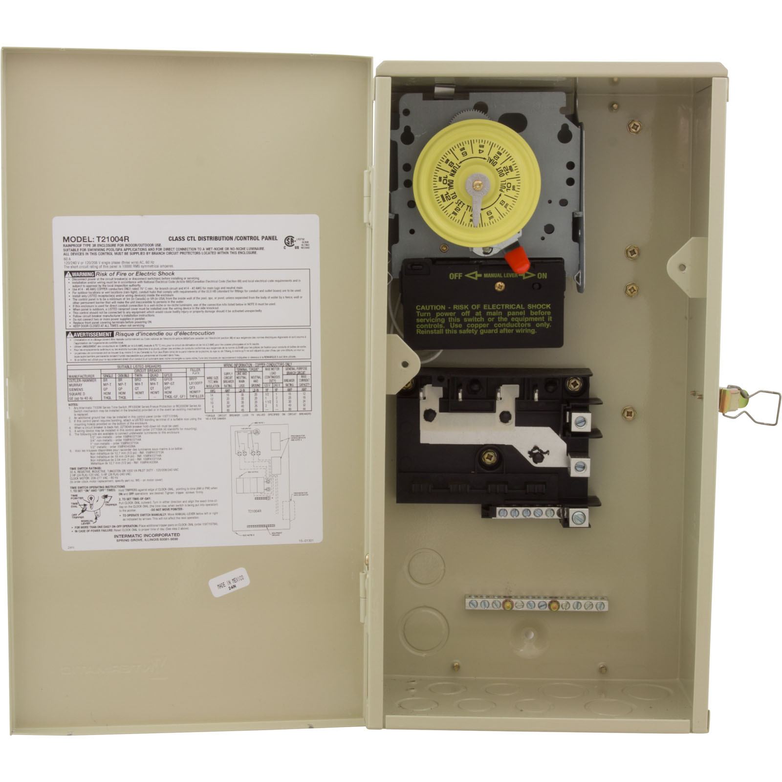 Can be used as a load center only, or add mechanisms or wiring devices for complete control systems. Commonly used for Pool/Spa Equipment and Lighting. Includes: 1 DPST heavy-duty time switch mechanism.