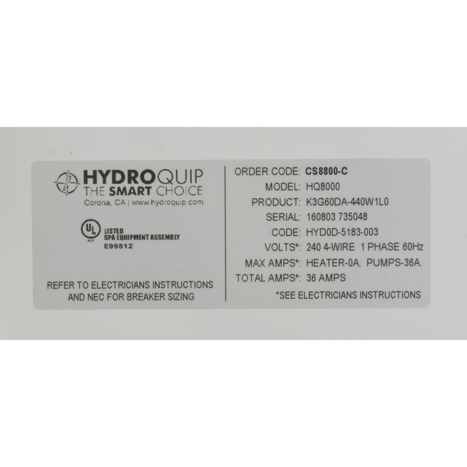 Outdoor Control, Hydro-Quip CS8800-C, Gas, w/60 ftTopside