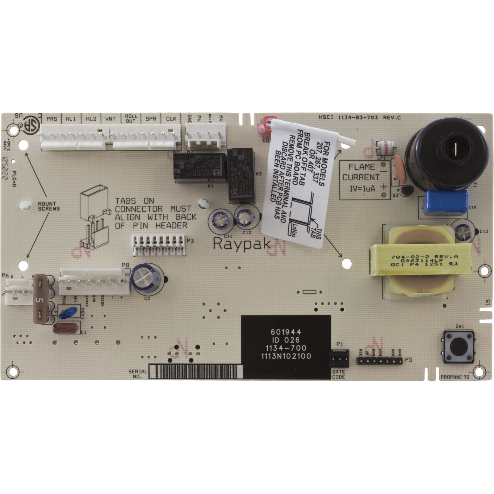 PCB Control, Raypak 185B-405B/206A-406,3 Wire,2004-Current