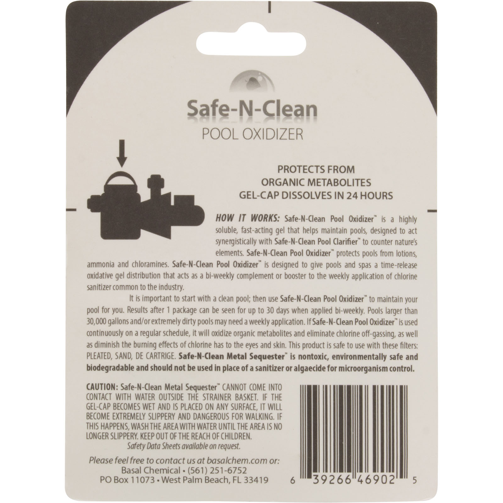 HOW IT WORKS: Safe-N-Clean Pool Oxidizer™ begins its fast-acting process immediately after being placed in the strainer basket of your pump. It is a highly soluble, fast-acting gel that helps maintain pools, designed to act synergistically with Safe-N-Clean Pool Clarifier™ to counter nature's elements. Safe-N-Clean Pool Oxidizer™ protects pools from lotions, ammonia and chloramines. Safe-N-Clean Pool Oxidizer™ is designed to give pools and spas a time-release oxidative gel distribution that acts as a bi-weekly complement or booster to the weekly application of chlorine sanitizer common to the industry.