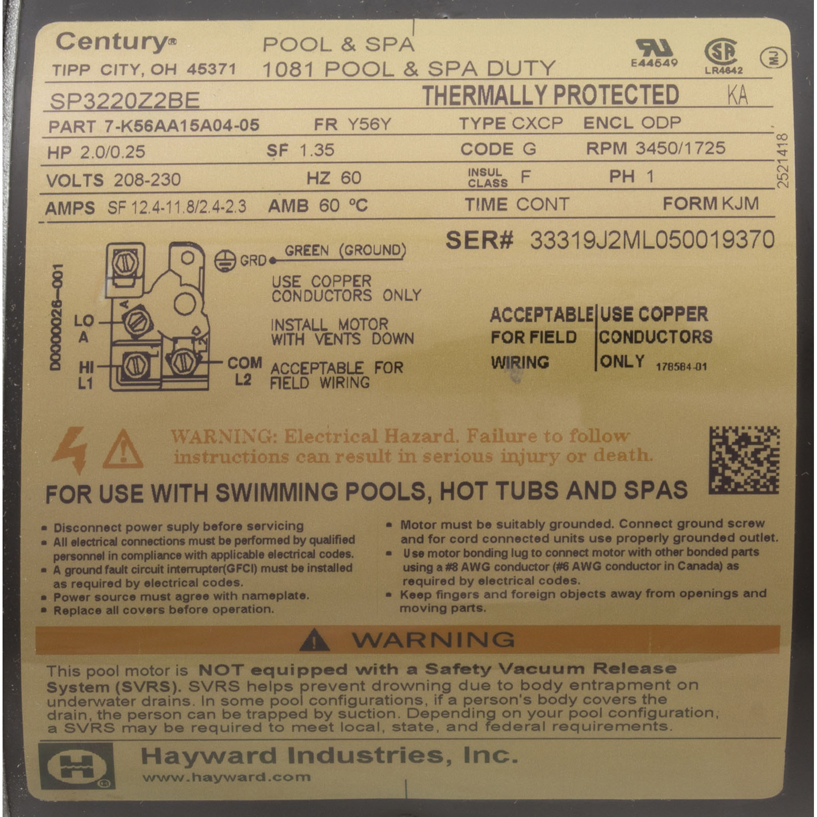 SPX3220Z2PE Power End-2Hp 2Sp(MtrSealPlateDifusser)