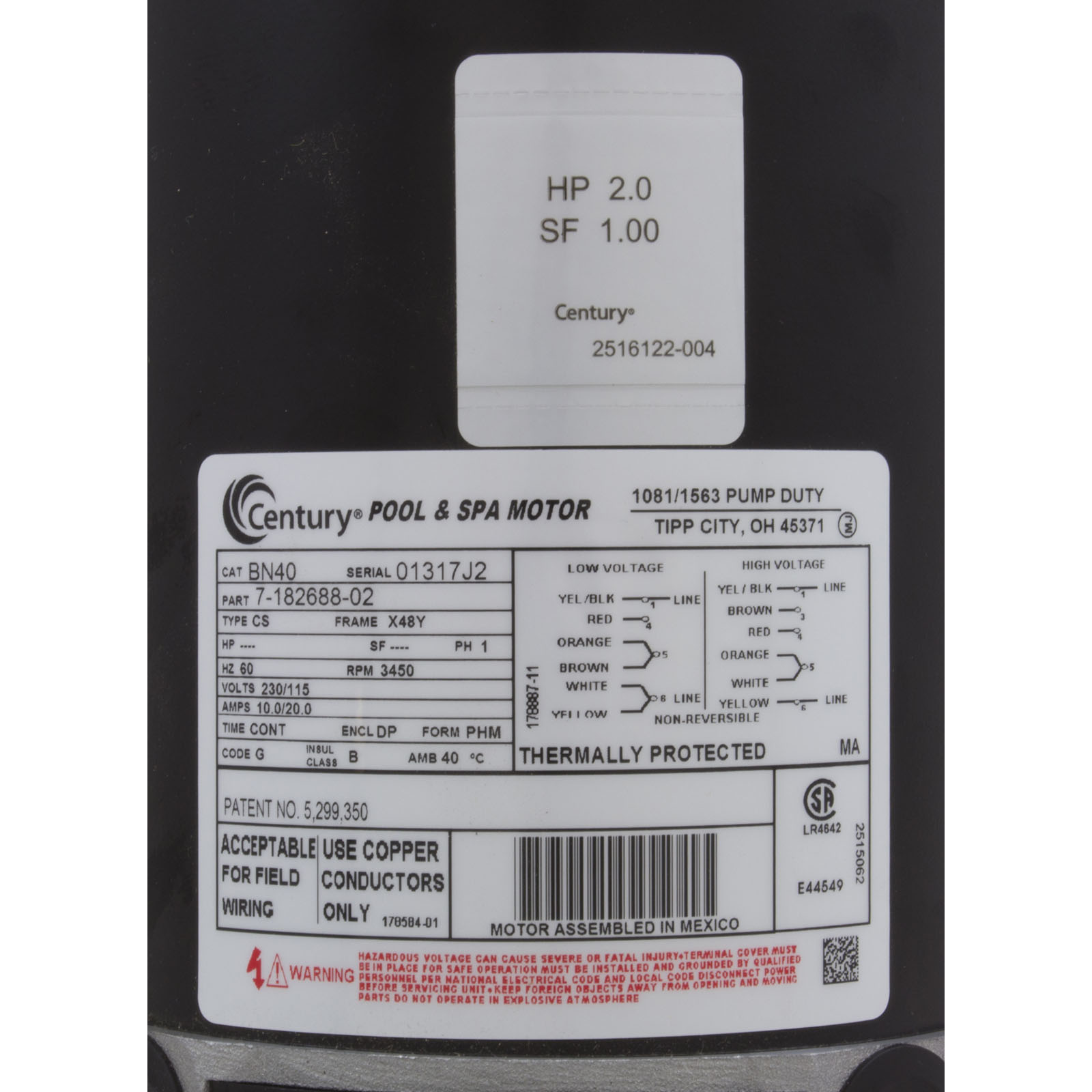 • Motors and Pumps with Horizon numbers ending with W or N carry a 1 year warranty from date of manufacture.