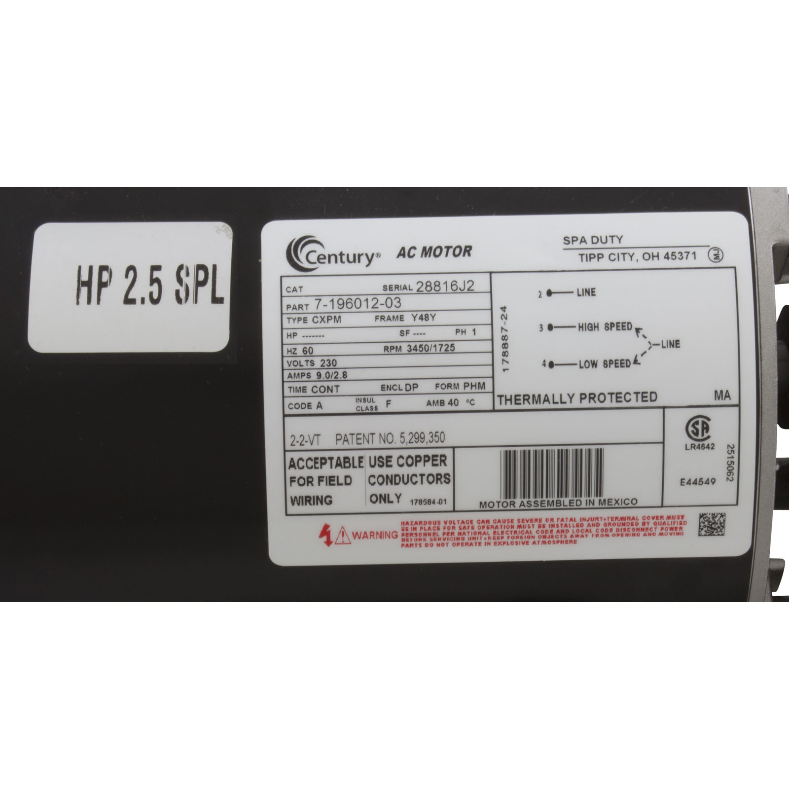 Pump, Aqua Flo XP2e, 2.5SPL Century, 230v, 2-Spd, 48fr, 2"