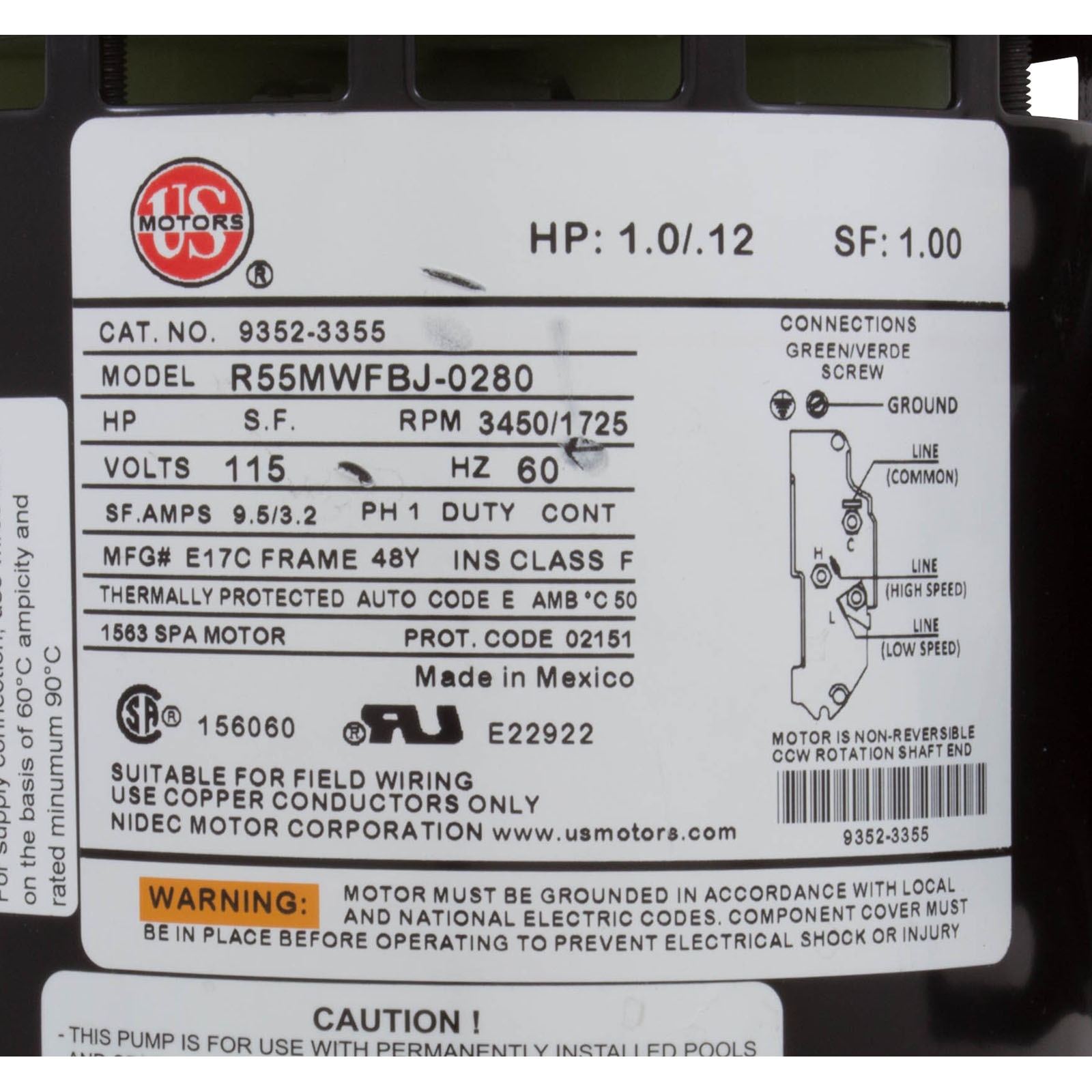 • Motors and Pumps with Horizon numbers ending with W or N carry a 1 year warranty from date of manufacture.