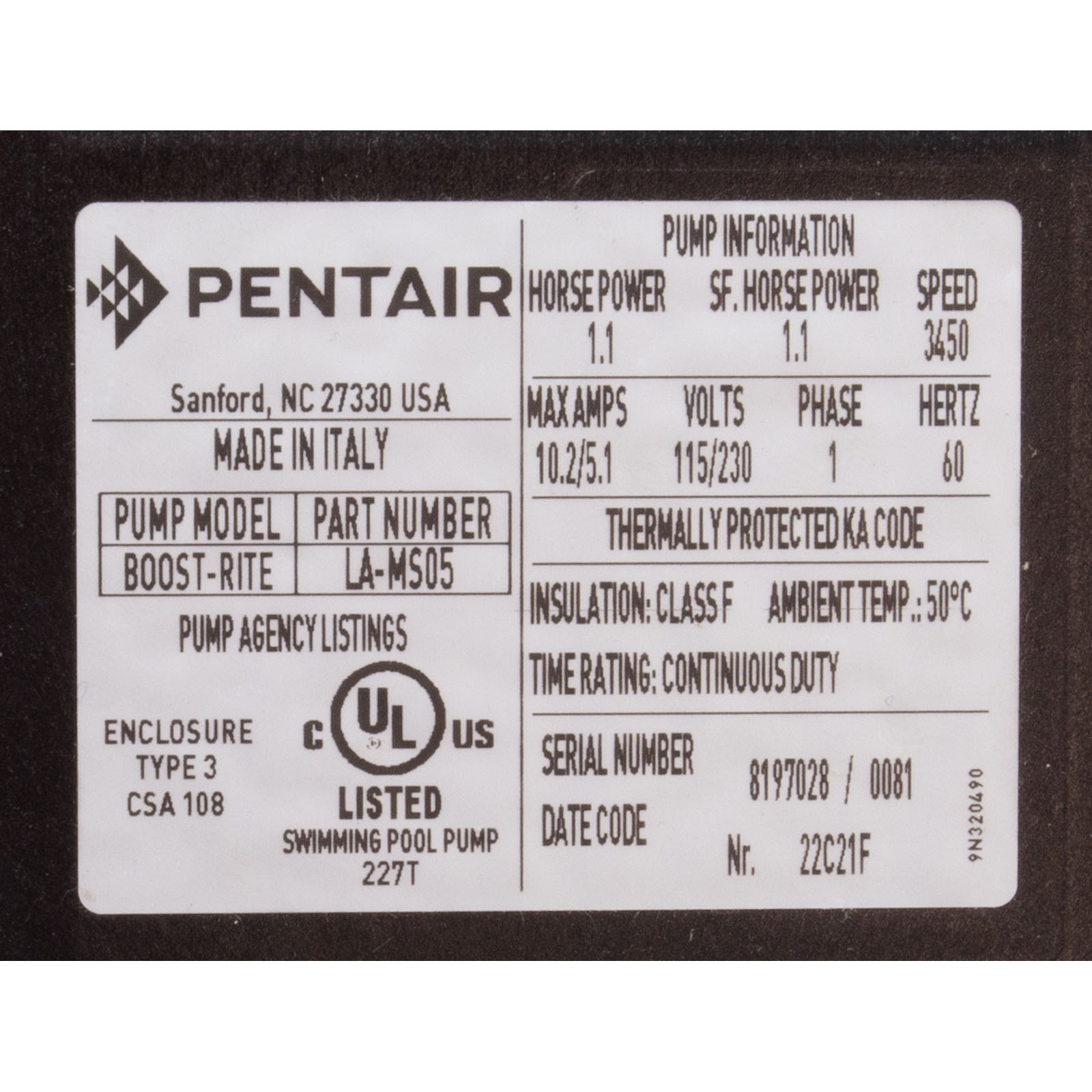 LA-MS05 Pump BoosterPentair Boost-Rite 1.1hp115/230v1-SpdEE