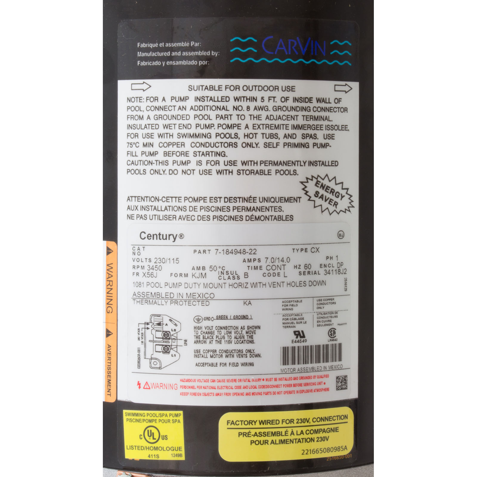 94027110 Pump Carvin Magnum Force1.0hp115v/230v1-SpdEEUprate