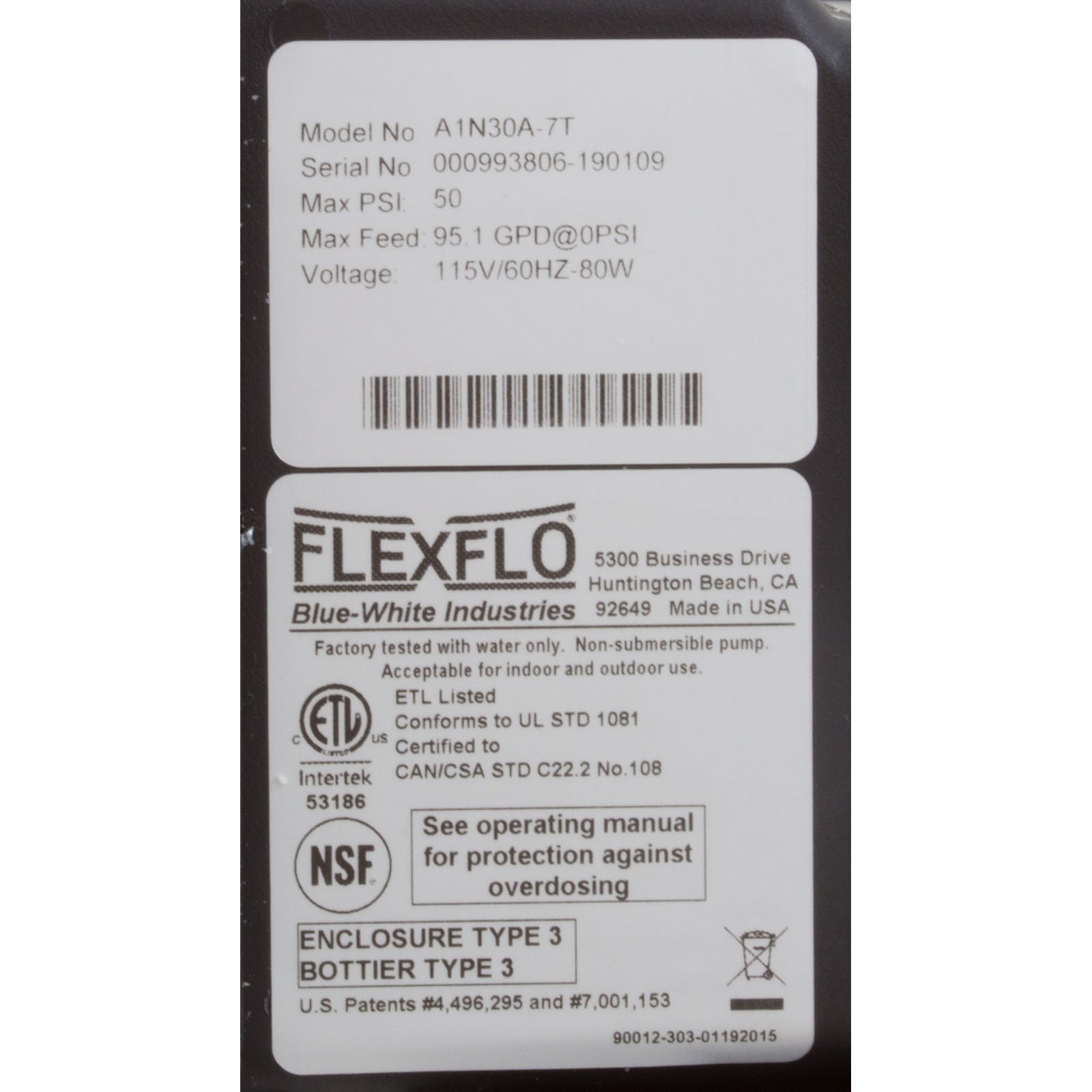 A1N30A-7T Pump Peristaltic Blue White Flexflo A-100NA 115v95.1 GPD