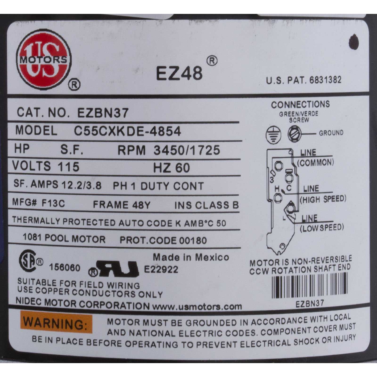 3420410-13 Pump WW Exec 1.0SPL 115v 2-Spd 48fr 2-1/2